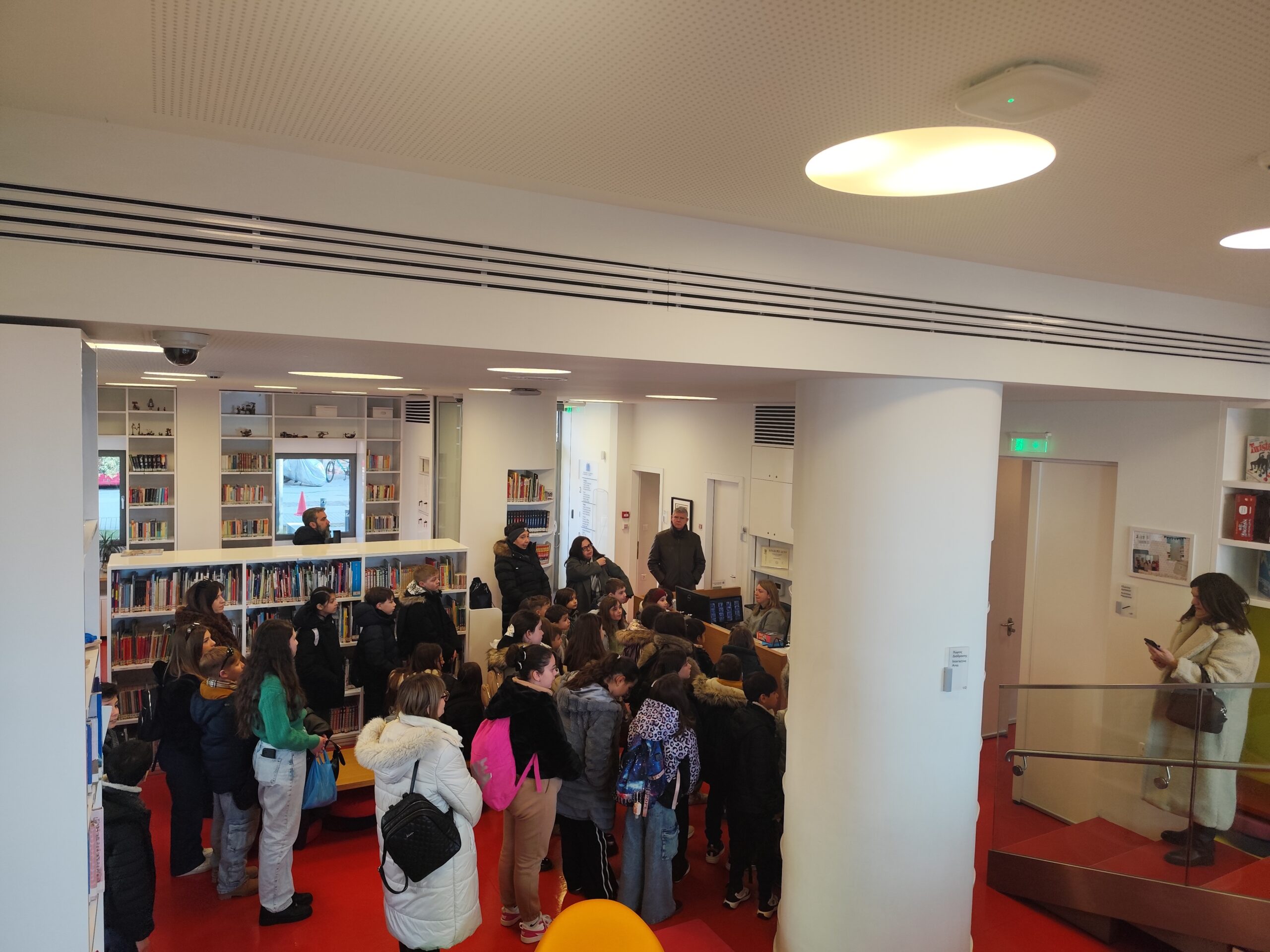 Κατά τη διάρκεια της επίσκεψης, οι μαθητές ξεναγήθηκαν στους χώρους της Βιβλιοθήκης και ενημερώθηκαν για τον ρόλο της ως κέντρου γνώσης, δημιουργίας και πολιτισμού.