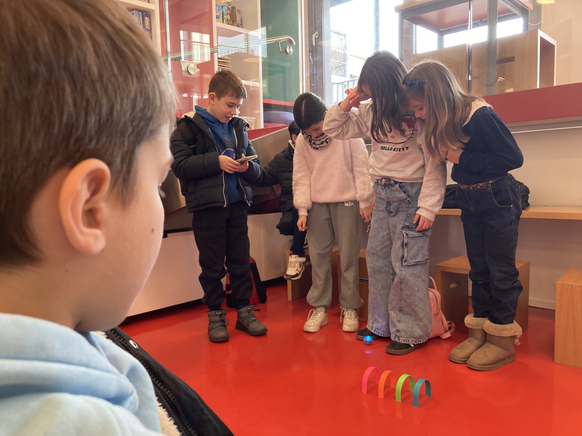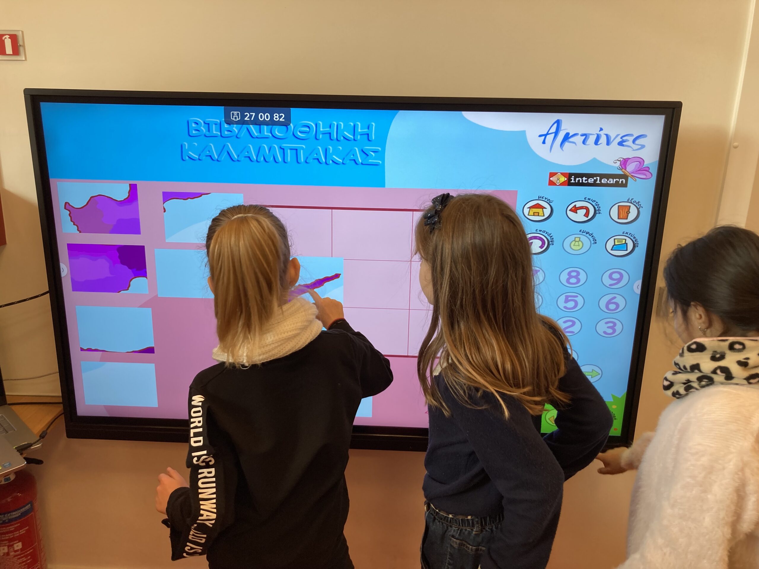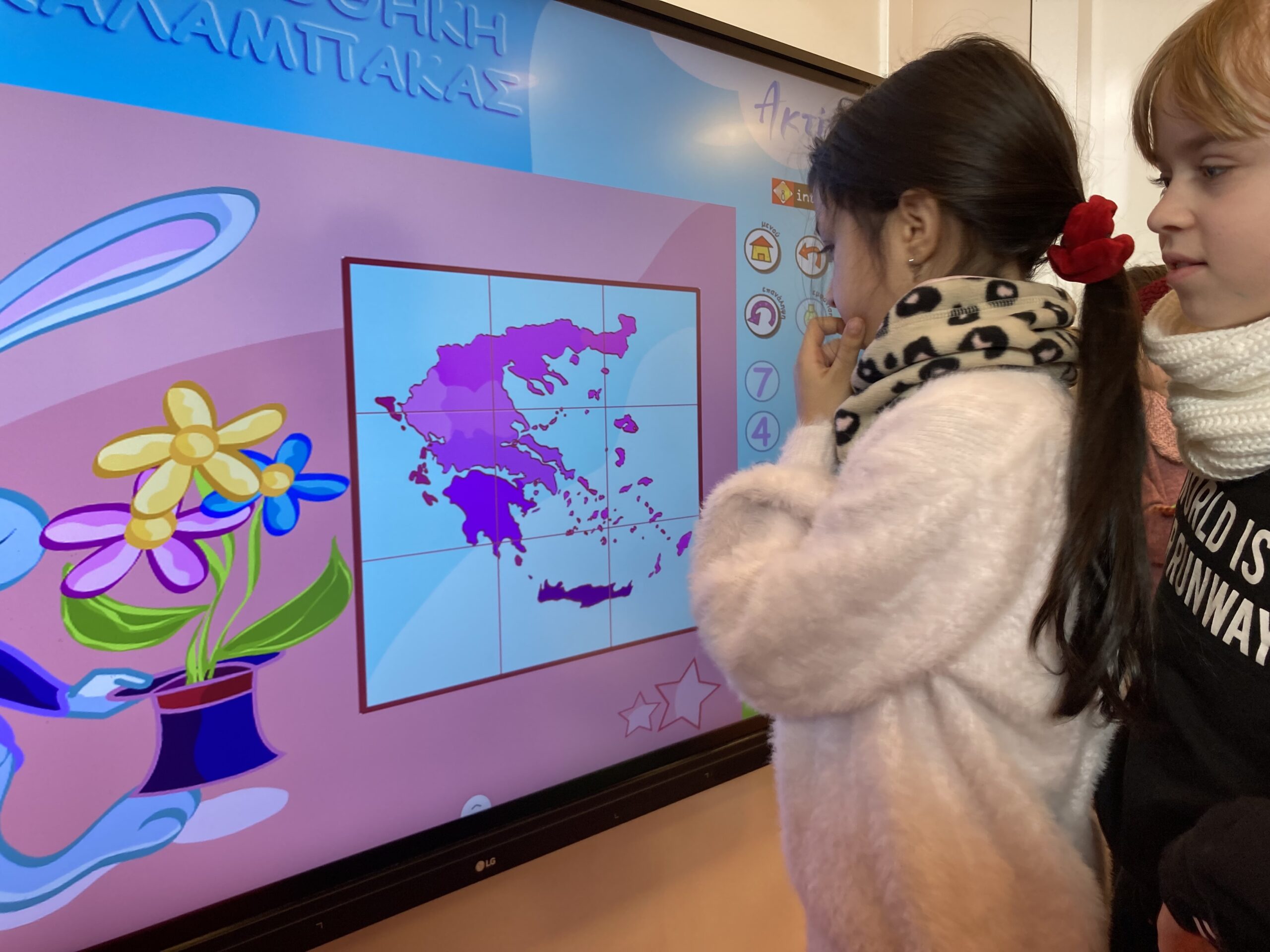 Παράλληλα, οι μαθητές είχαν την ευκαιρία να αλληλεπιδράσουν με τη διαδραστική οθόνη, συμμετέχοντας σε παιγνιώδεις δραστηριότητες που συνδύαζαν τη γνώση με το παιχνίδι, ενισχύοντας το ενδιαφέρον και τον ενθουσιασμό τους για τη μάθηση.