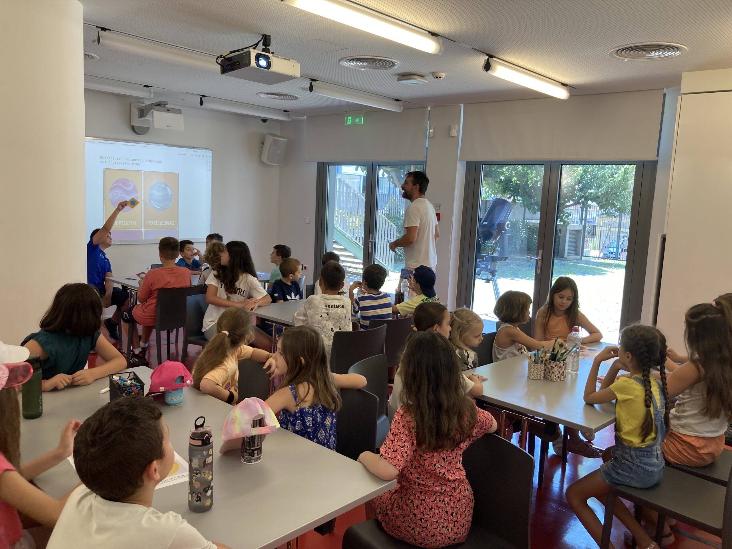 Τη Δευτέρα 15 Ιουλίου, στο παιδικό εργαστήριο της ΚΕ 2024 «Η αρμονία των πλανητών», οι μικροί μας αναγνώστες έγιναν αστροναύτες και ταξίδεψαν στο διάστημα! Σκοπός του εργαστηρίου ήταν τα παιδιά να αποκτήσουν γνώσεις για το ηλιακό μας σύστημα και να αντιληφθούν τη σχέση της Γης με τους άλλους πλανήτες.