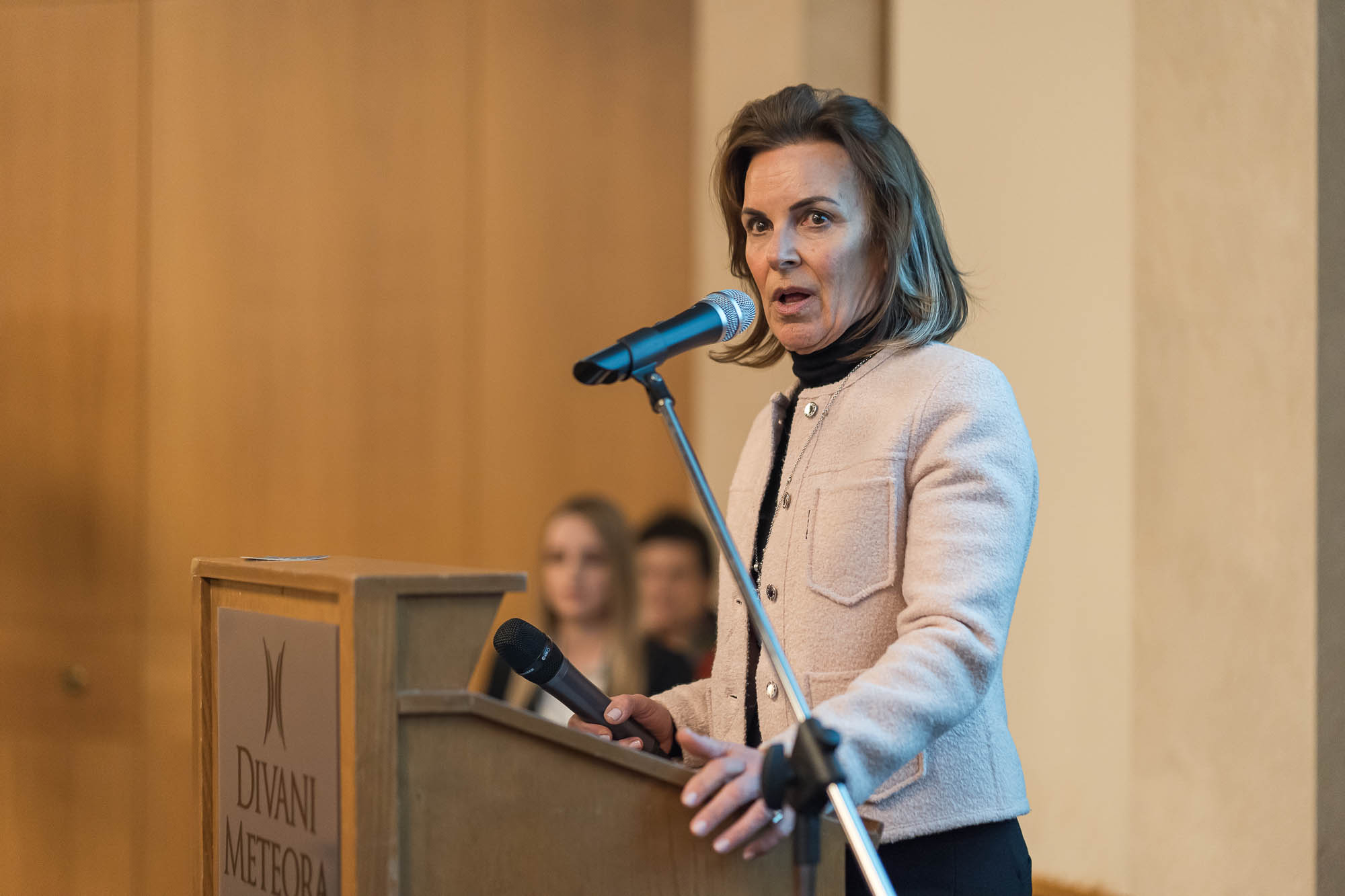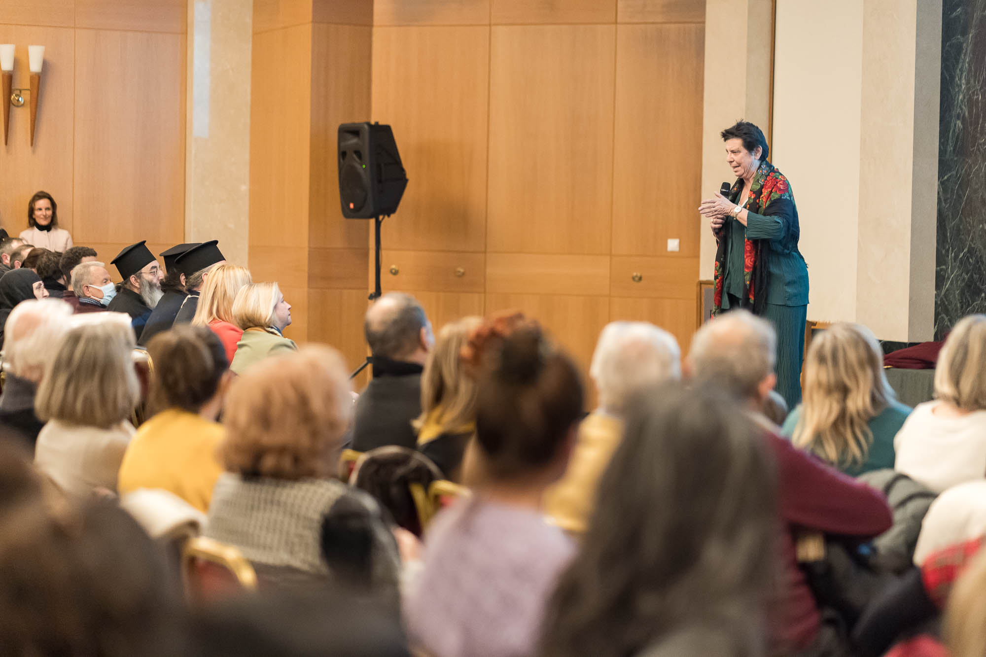 Η Πρόεδρος της KDK, κα Κατερίνα Δημουλά-Μέρριαμ, εμφανώς συγκινημένη, καλωσό-ρισε την κα Ευθυμίου και ευχαρίστησε το κοινό που παρευρέθηκε στην εκδήλωση.