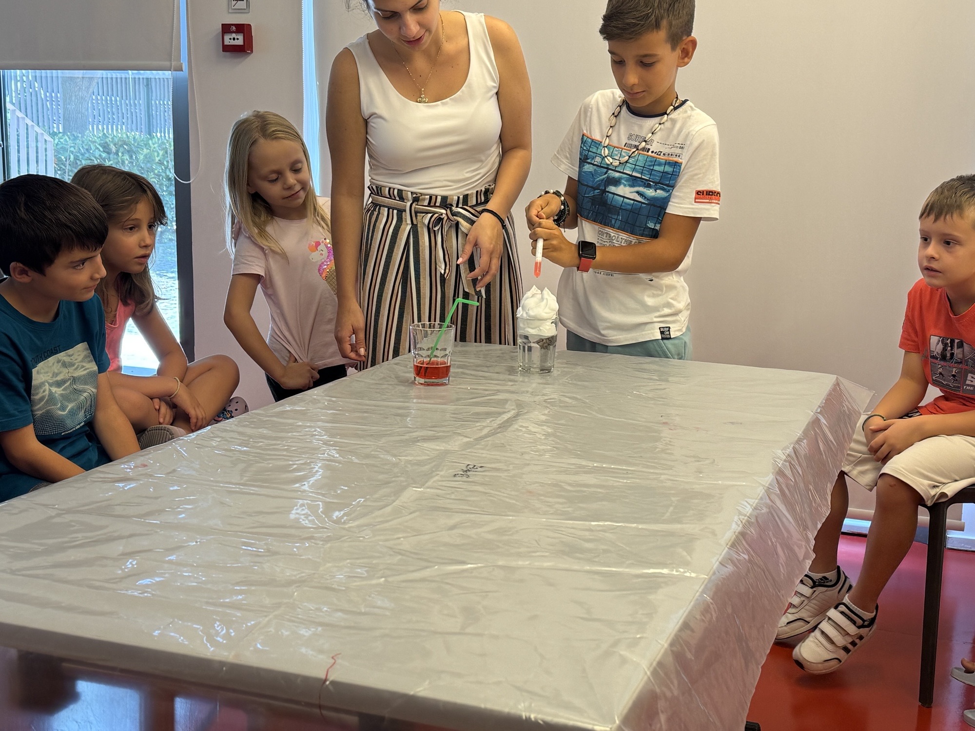 Οι μικροί επιστήμονες είχαν την ευκαιρία να γνωρίσουν τις ιδιότητες του νερού, παρατηρώντας την κίνησή του, κατασκευάζοντας ουράνιο τόξο, και προκαλώντας χημικές αντιδράσεις με απλά υλικά. Σε κλίμα ενθουσιασμού και συνεργασίας, ανέπτυξαν δεξιότητες παρατήρησης, σκέψης και πειραματισμού, μέσα από το παιχνίδι και την ανακάλυψη.