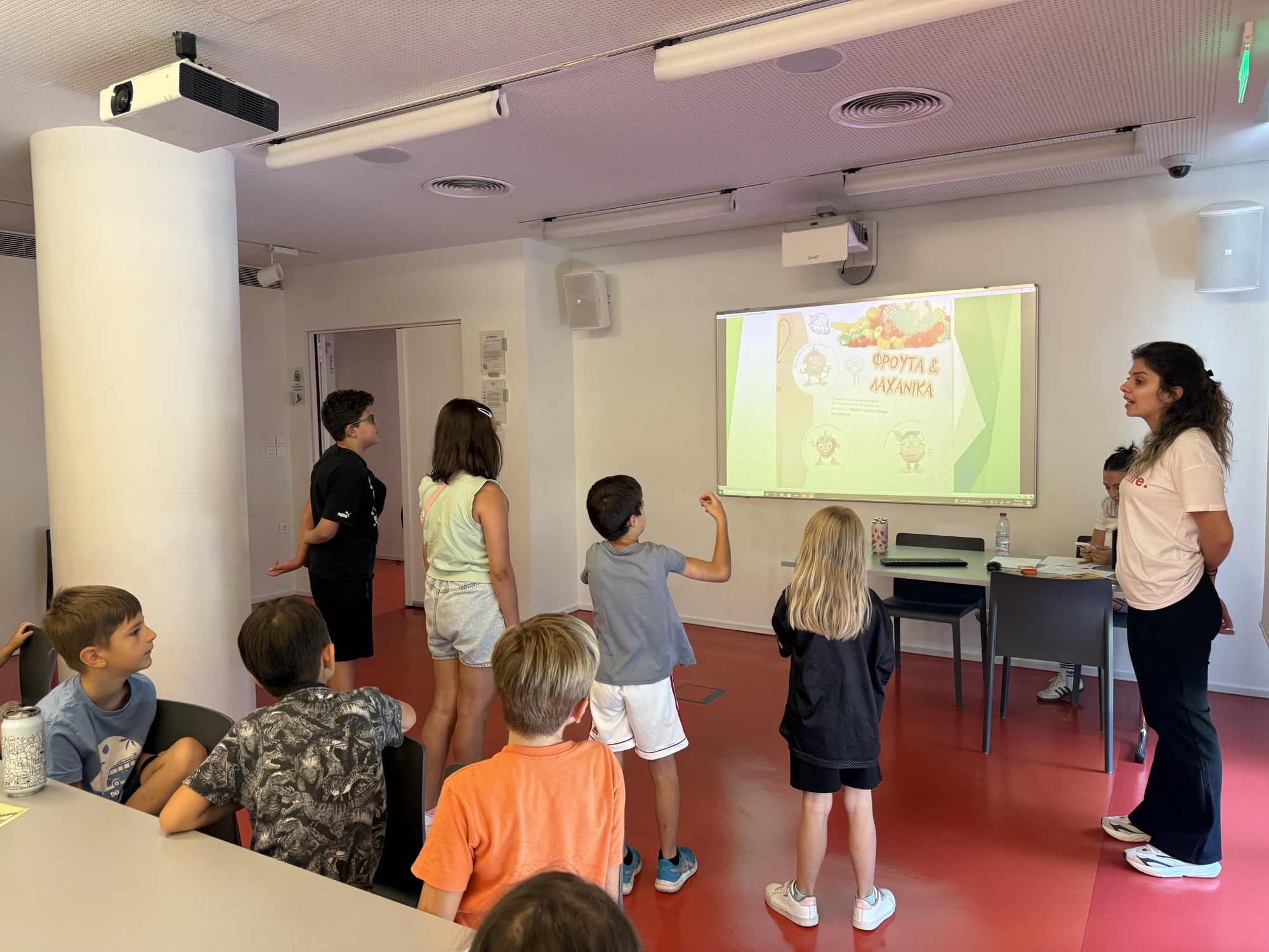 Τα παιδιά συμμετείχαν ενεργά σε δημιουργικά παιχνίδια, ευχάριστες συζητήσεις και βιωματικές δραστηριότητες, μαθαίνοντας για τις βασικές ομάδες τροφίμων, τα θρεπτικά συστατικά των φρούτων και των λαχανικών, και τη σημασία της ισορροπημένης διατροφής.