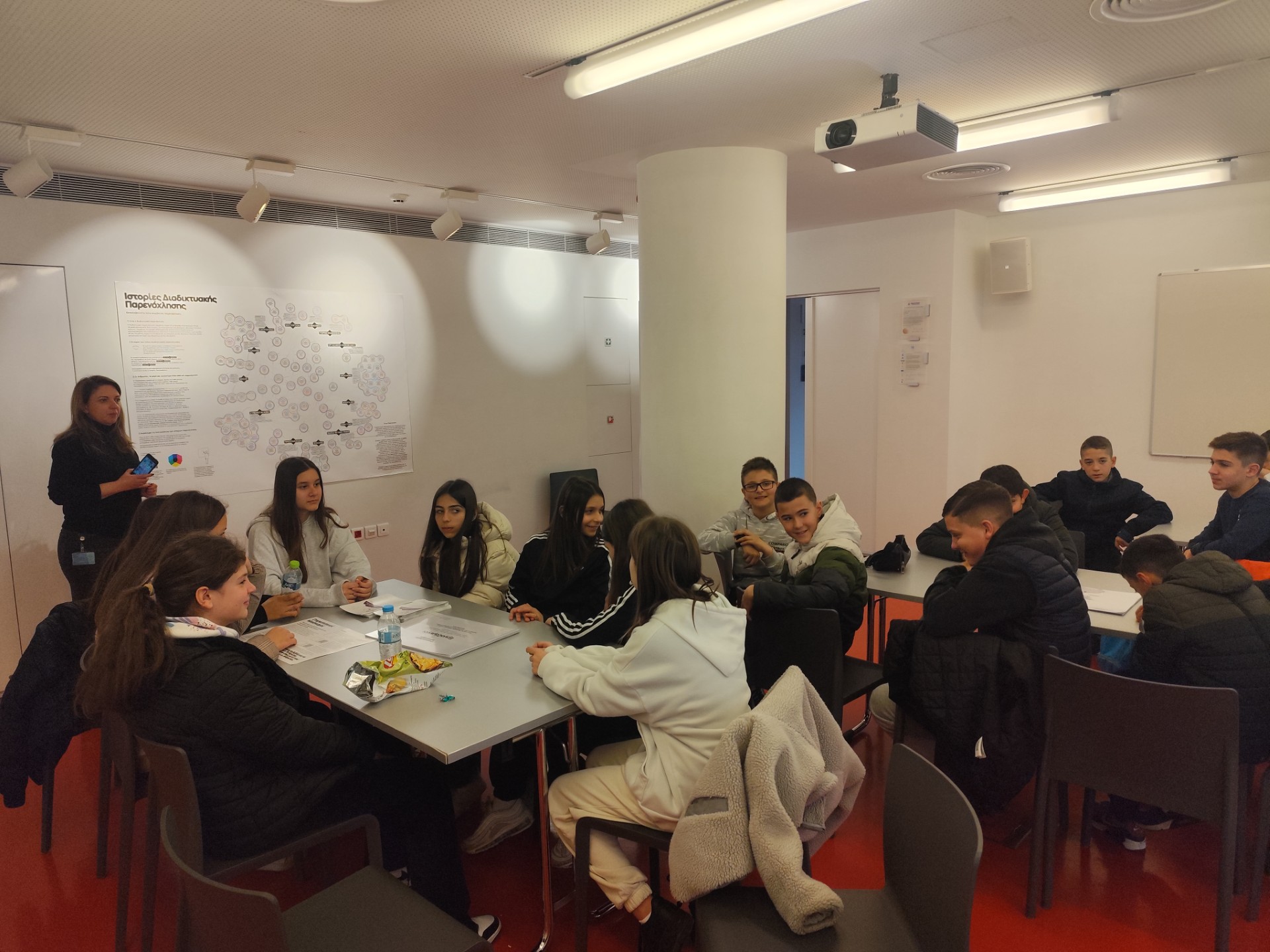 Τα παιδιά ενημερώθηκαν για τις συνέπειες, που επιφέρει η τεχνητή νοημοσύνη και συμμετείχαν σε συζήτηση σχετικά με τις διαδικτυακές παρενοχλήσεις, απάτες και τους τρόπους επιρροής που χρησιμοποιούνται με σκοπό την παραπλάνηση της κοινής γνώμης.