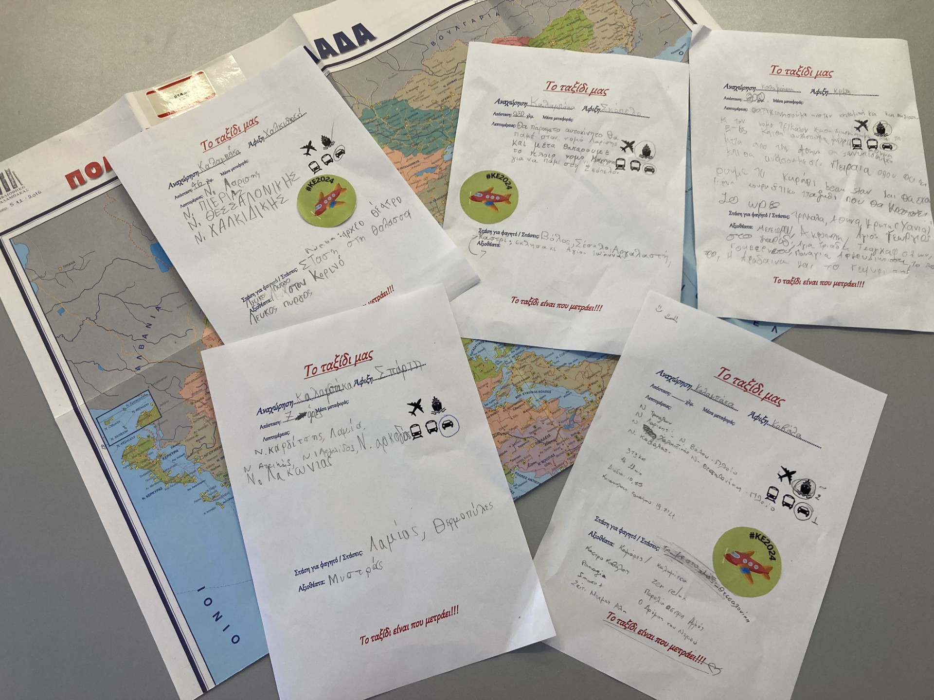 Σκοπός του εργαστηρίου ήταν τα παιδιά να εξοικειωθούν με την παρατήρηση ενός χάρτη, να εντοπίσουν χρήσιμες πληροφορίες για άλλους τόπους και να οργανώσουν ένα ταξίδι σε έναν συγκεκριμένο προορισμό με ενδιάμεσους σταθμούς. Αρχικά, χωρίστηκαν σε ομάδες και η κάθε ομάδα, με αναχώρηση από την πόλη της Καλαμπάκας, επέλεξε τυχαία στο χάρτη τον τελικό προορισμό. Έπειτα, με τη βοήθεια τουριστικών οδηγών και χαρτών, προσπάθησε να υπολογίσει την χιλιομετρική απόσταση, τις ώρες του ταξιδιού, πιθανά σημεία για στάσεις και, φυσικά, αξιοθέατα που αξίζει να επισκεφτεί. Όλα τα παιδιά συνεργάστηκαν μεταξύ τους και ενθουσιάστηκαν με τη διαδικασία, αφού ανακάλυψαν νέα μέρη διασχίζοντας πολλούς νομούς της χώρας! Και το πιο σημαντικό· έμαθαν ότι το ταξίδι είναι αυτό που μετράει και όχι τόσο ο προορισμός!