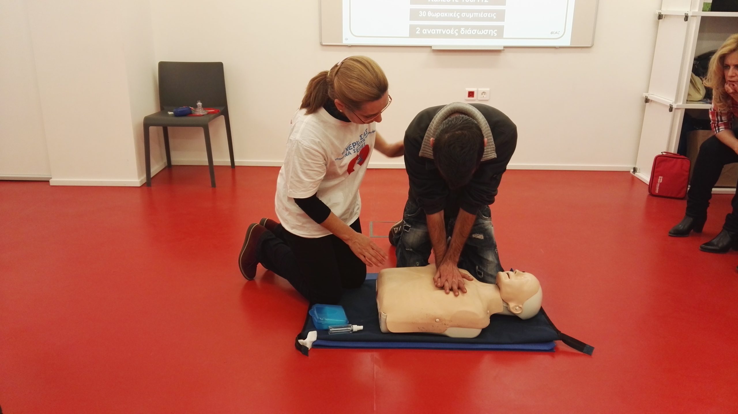Οι συμμετέχοντες είχαν την ευκαιρία να κάνουν πρακτική άσκηση σε προπλάσματα και εκπαιδευτικούς απινιδωτές.