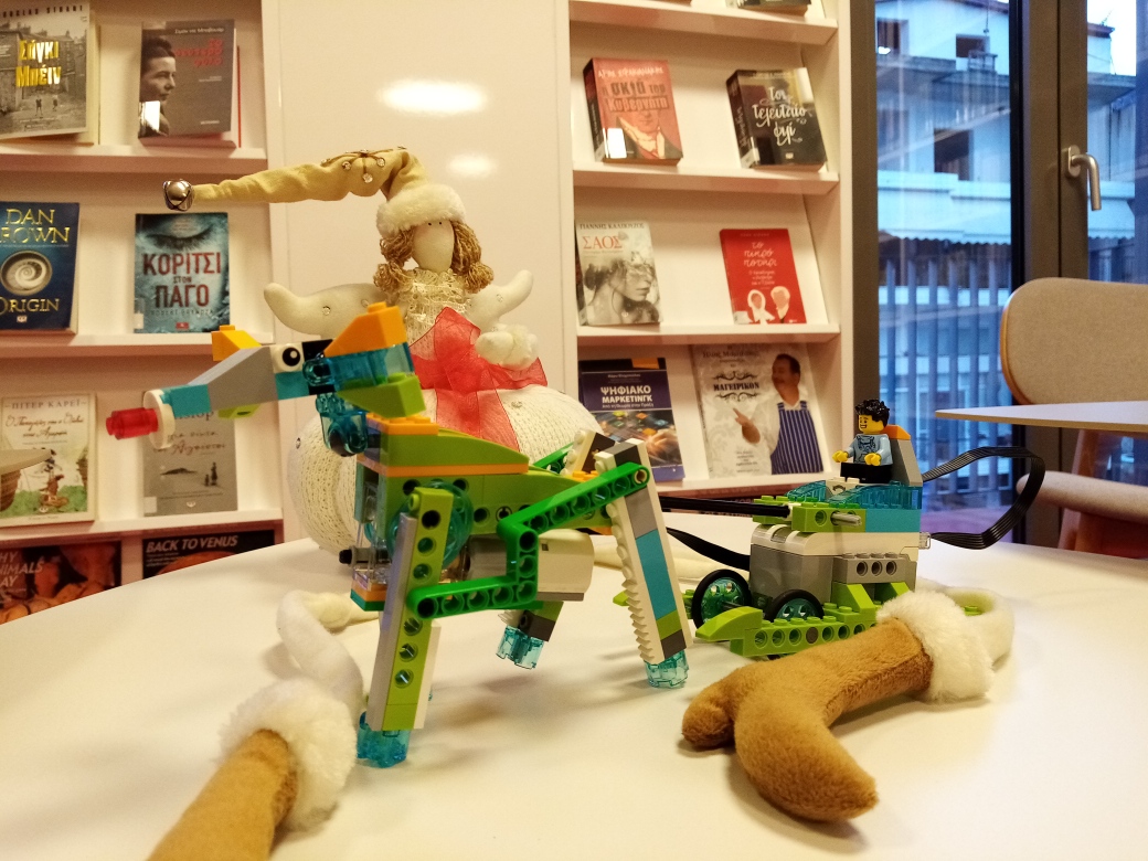 Την Τρίτη 7 Δεκεμβρίου πραγματοποιήθηκαν δυο διασκεδαστικά εργαστήρια, ρομποτικής και τρισδιάστατης εκτύπωσης, με χριστουγεννιάτικες κατασκευές για παιδιά 7-12 ετών. Οι μικροί μας φίλοι, είχαν τη δυνατότητα να κατασκευάσουν τα δικά τους χριστουγεννιάτικα ρομπότ με το εκπαιδευτικό πακέτο ρομποτικής LEGO WeDo 2.0, ενώ παράλληλα έφτιαξαν χριστουγεννιάτικα δέντρα και το έλκηθρο του Άι-Βασίλη.