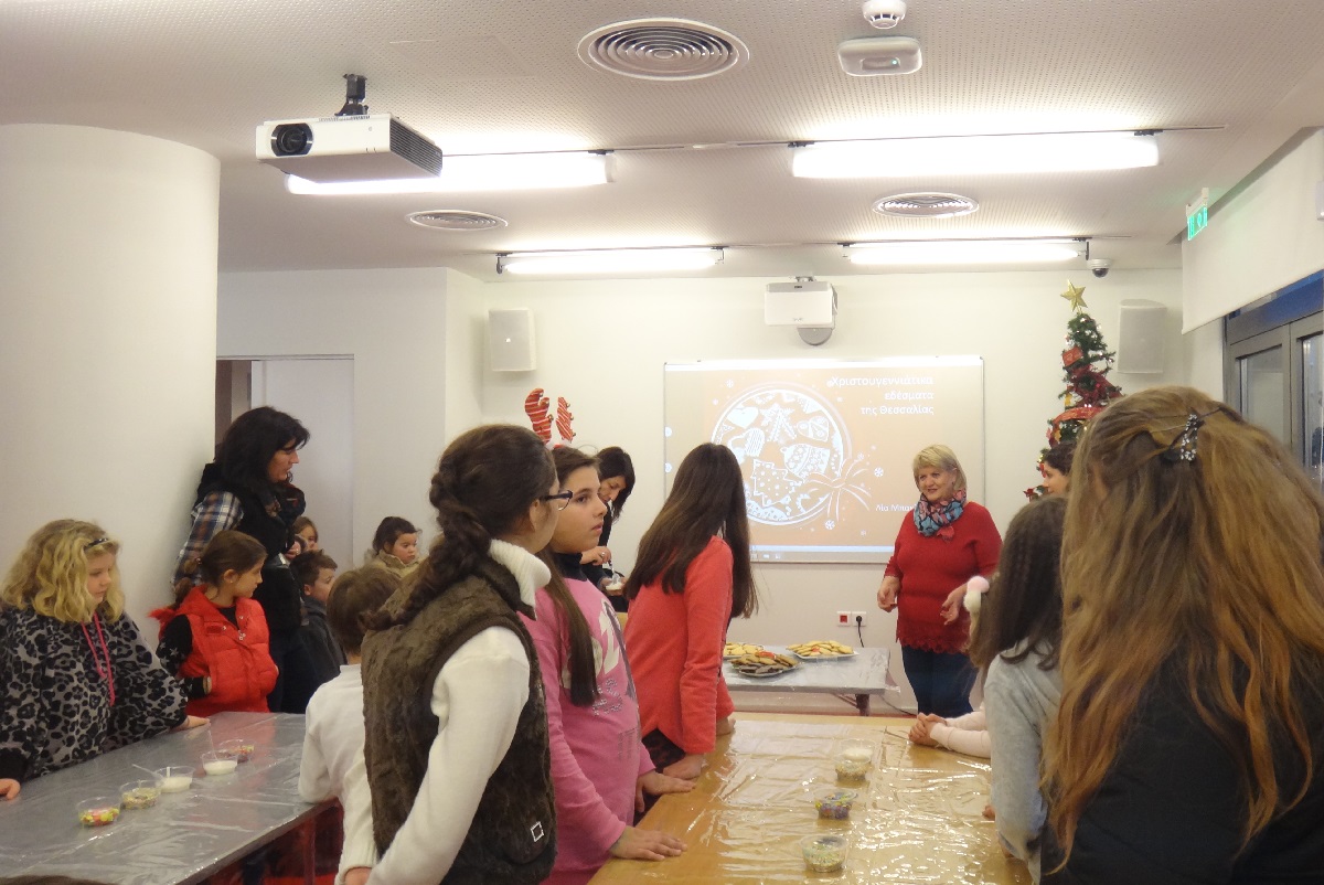 Την Πέμπτη 21 Δεκεμβρίου, τα παιδιά έμαθαν για τα παραδοσιακά Χριστουγεννιάτικα εδέσματα της Θεσσαλίας και στολίσανε Χριστουγεννιάτικα κουλουράκια με γλάσο, πολύχρωμη τρούφα και σοκολατάκια. Οι μικροί μας ζαχαροπλάστες απόλαυσαν τα μπισκότα που οι ίδιοι έφτιαξαν.