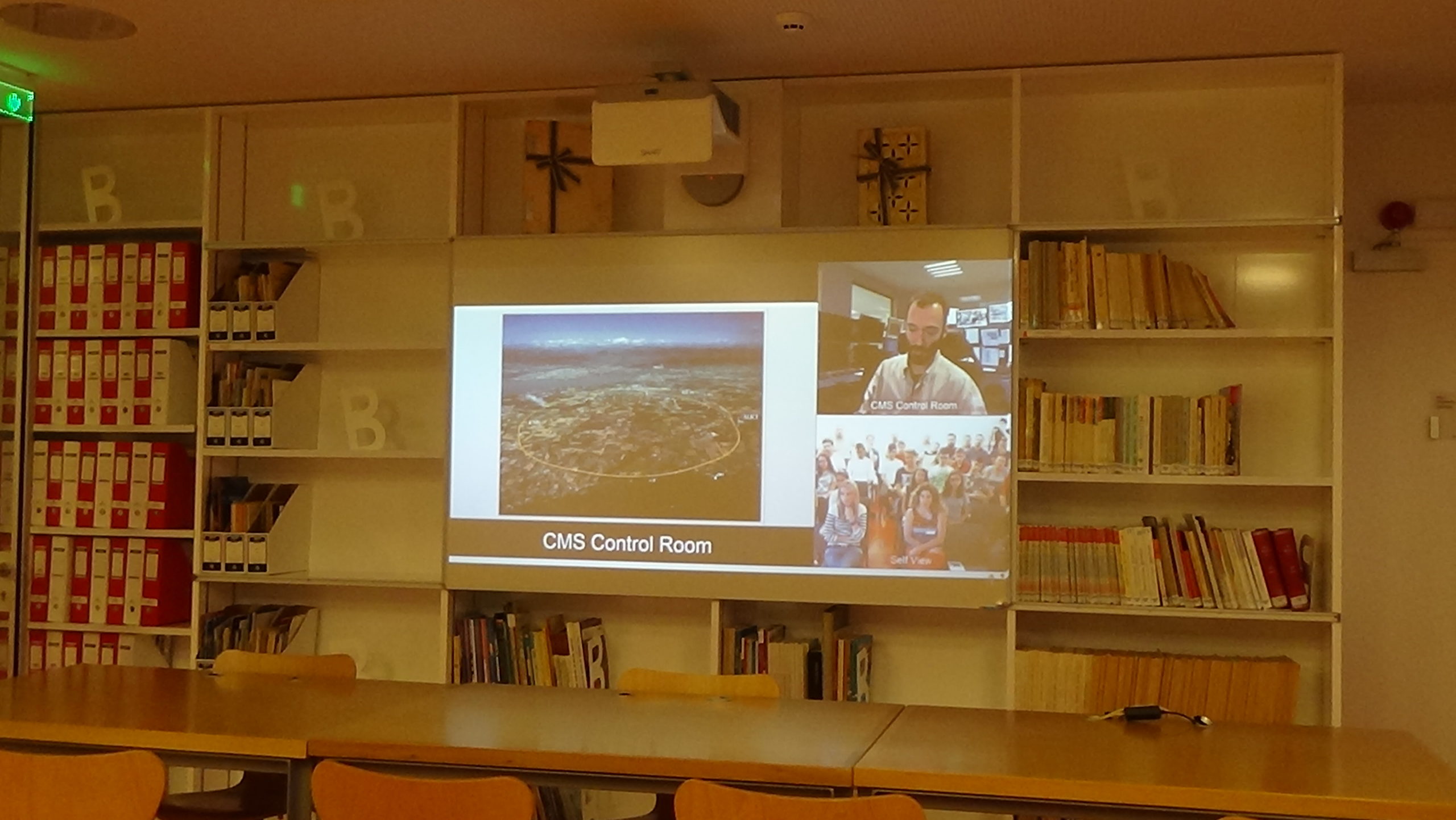 Η Βιβλιοθήκη Καλαμπάκας συνδέθηκε ζωντανά με το CERN (Ευρωπαϊκό Εργαστήριο Πυρηνικών Ερευνών) στην Ελβετία, ώστε μαθητές, γονείς και εκπαιδευτικοί να ξεναγηθούν στο πείραμα CMS (Συμπαγής Μιονικές Σωληνοειδές). Όσοι παρευρέθηκαν έμαθαν για το μεγαλύτερο πειραματικό κέντρο πυρηνικών ερευνών, καθώς και για τη λειτουργία και σκοπό του πειράματος αυτού. Στο τέλος, οι μαθητές είχαν τη δυνατότητα, με τη βοήθεια των δασκάλων και καθηγητών τους, να θέσουν κάποιες ερωτήσεις στους ερευνητές του CERN.