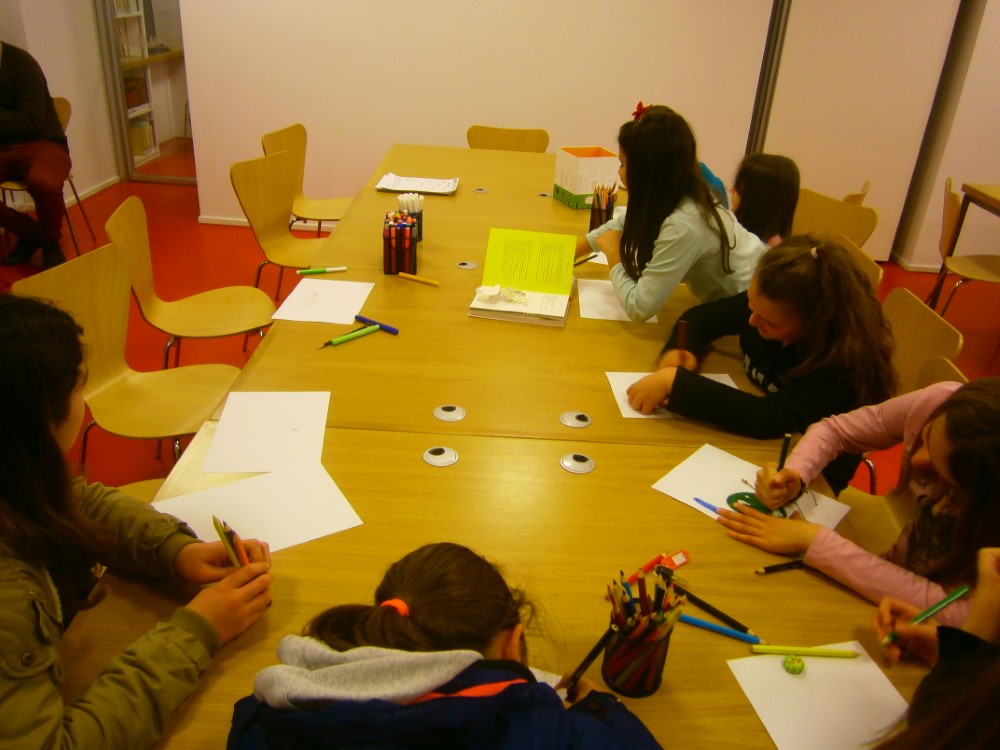 Τα παιδιά ζωγράφισαν έχοντας πάνω από το κεφάλι τους ένα συννεφάκι με εικόνες όπως τριαντάφυλλο, πλανήτης, τα δέντρα μπαομπάμπ, ο βασιλιάς, τα ηφαίστεια.