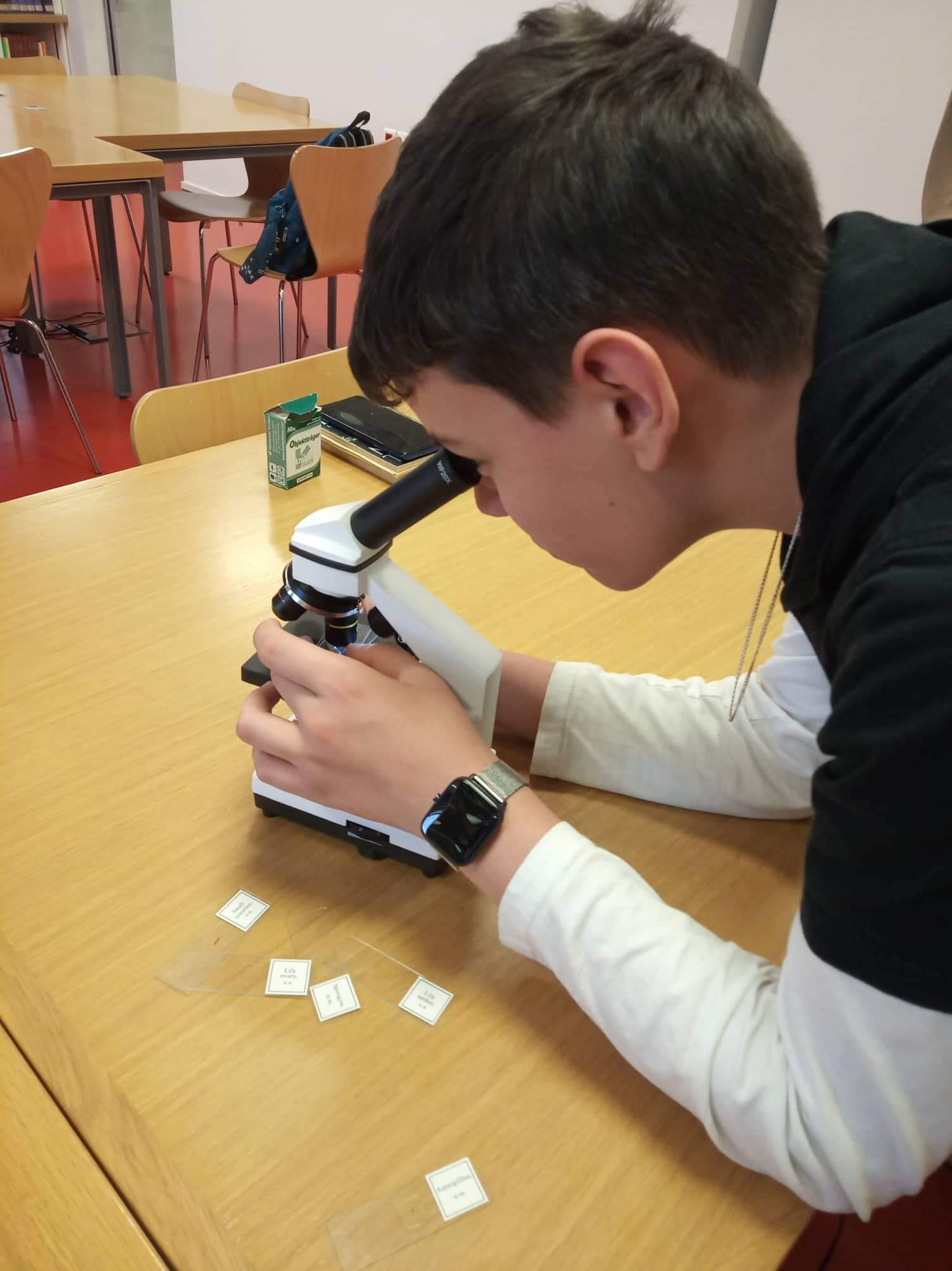 Finally, the students had the opportunity to observe animal and plant tissues with the high-quality microscope available in the Library and see in practice all that they talk about in biology class.
