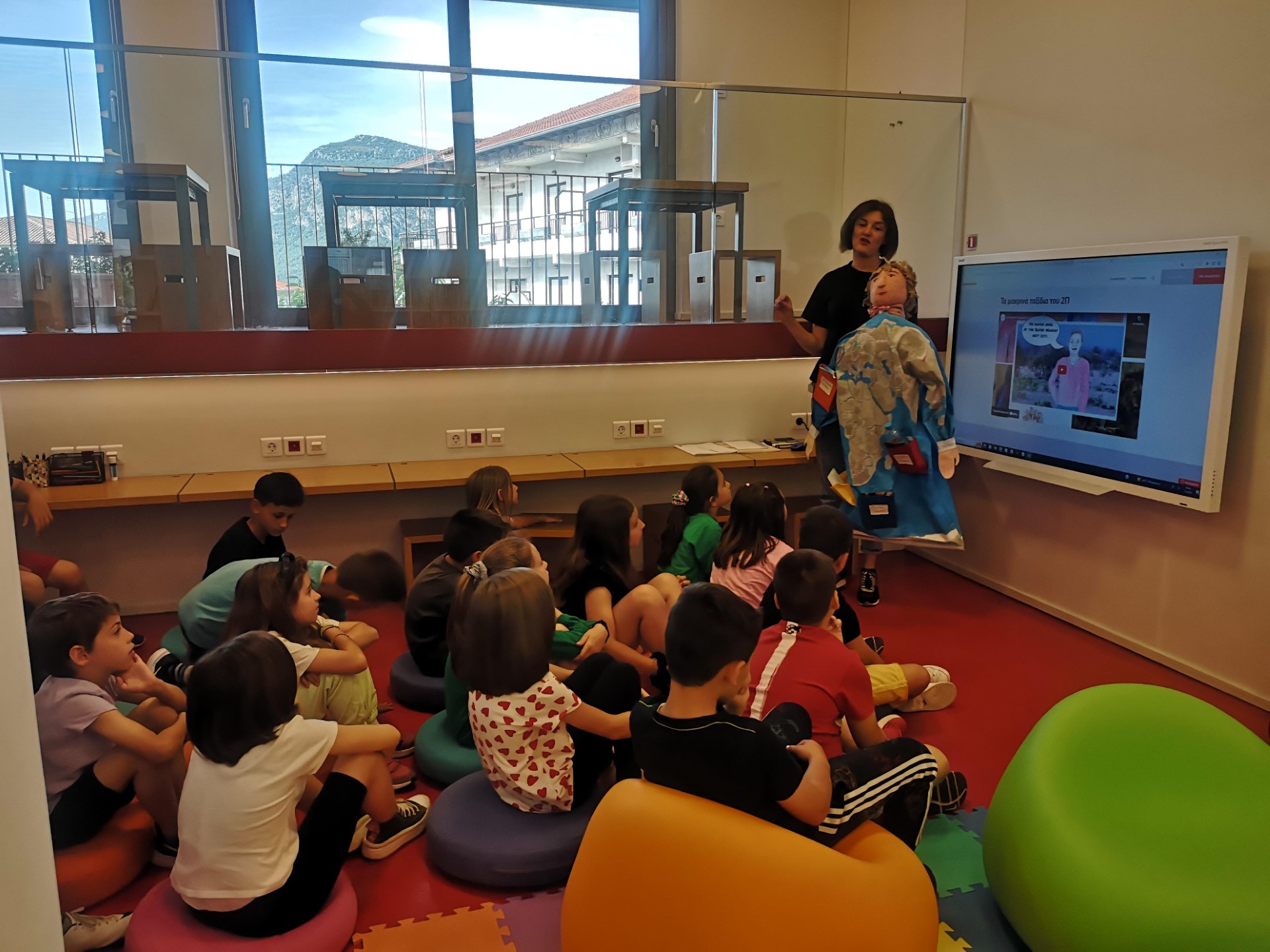 On Wednesday morning, we welcomed the students of the 2nd and 4th grade of the Kalambaka 1st Primary School to the Library, in order to implement a workshop with the 2P educational suitcase of Action Aid. The young students met 2P, a doll that embodies the Global Citizen, traveled with him to many countries of the world and were excited by the experiences he gained from his long trips.