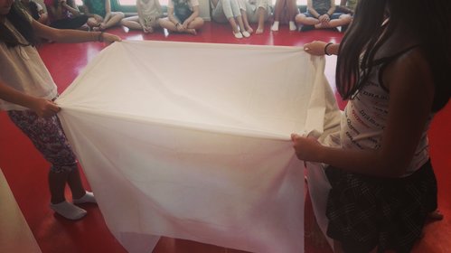 Οι μικροί εξερευνητές με καθοδηγήτρια την κ. Μαρία Γαδετσάκη, πραγματοποιήσαν ένα μικρό ταξίδι εξερεύνησης των αισθήσεων και ολοκλήρωσαν τη δράση με τον σχηματισμό παζλ, χρησιμοποιώντας ως κομμάτια τα σώματά τους. Δεν ήταν μόνο η ομαδικότητα και η συνεργασία, αλλά και η διαδικασία εξερεύνησης των δυνατοτήτων του ίδιου τους του σώματος κυρίως ελλείψει της μιας βασικής αίσθησης, της όρασης, δίνοντας έτσι χώρο και στις υπόλοιπες να αναπτυχθούν.