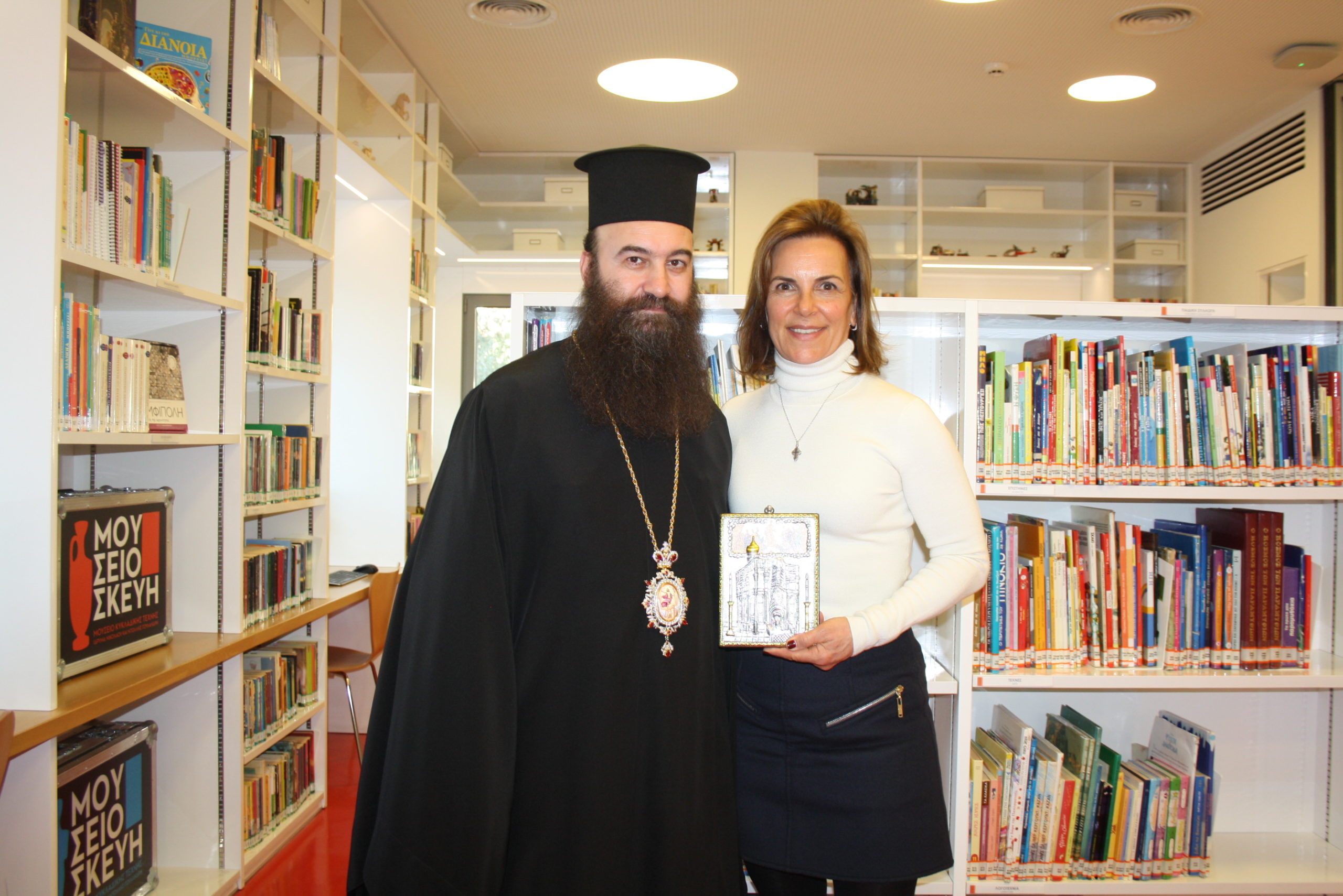 Τη Δευτέρα 17 Φεβρουαρίου ο Γέρων – Σκευοφύλαξ του Παναγίου Τάφου συνοδευόμενος από τον κο Κώστα Φαμίση επισκέφτηκαν τη Βιβλιοθήκη όπου τον υποδέχτηκαν η Πρόεδρος και Δωρήτρια κ. Κατερίνα Δημουλά, ο Αντιπρόεδρος κ. Ηλιόπουλος και η Διευθύντρια κ. Κατσιαμάνη.