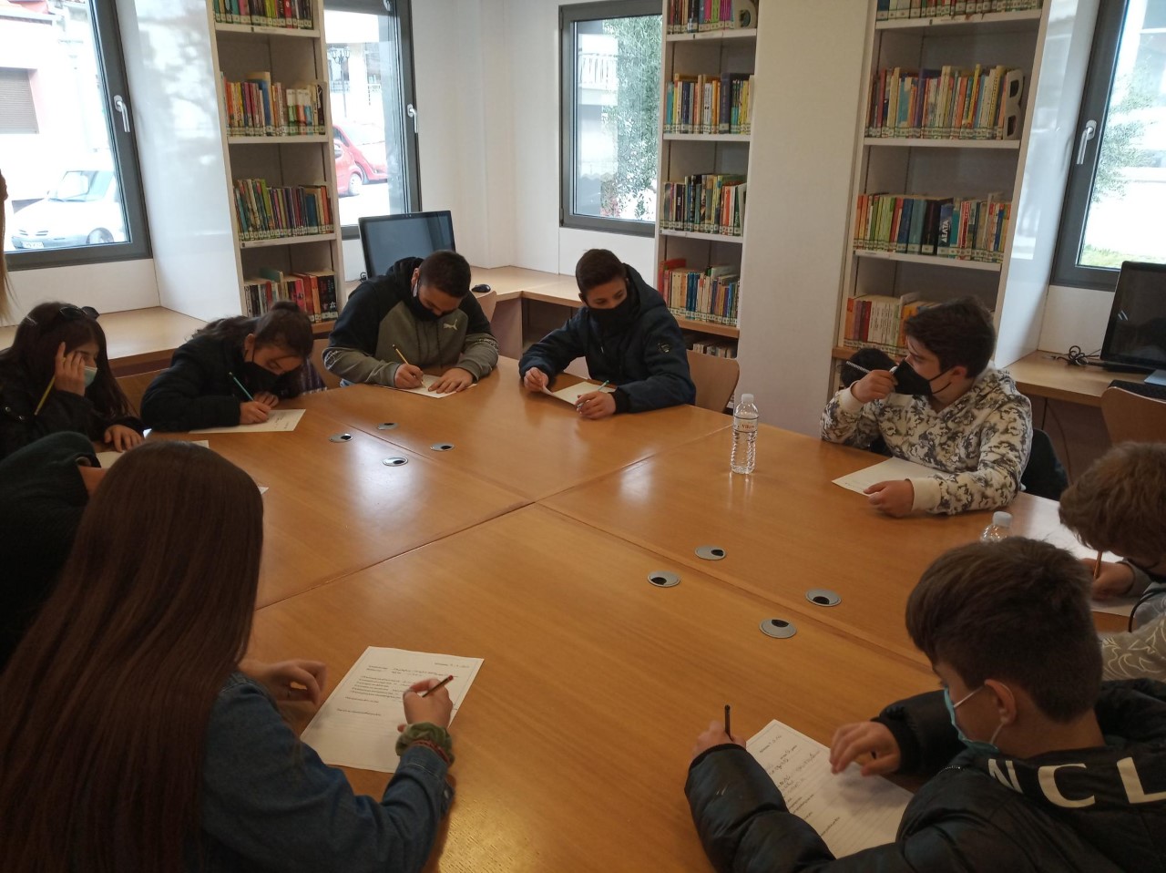 Το πρωί της Δευτέρας 4 Απριλίου, είχαμε τη χαρά να φιλοξενήσουμε στη Βιβλιοθήκη τους μαθητές του Γυμνασίου Οξύνειας συνοδεία των εκπαιδευτικών τους. Τα παιδιά ξεναγήθηκαν και στα τρία επίπεδα της Βιβλιοθήκης, ενημερώθηκαν για τον τρόπο λειτουργίας της, καθώς και για τα εργαστήρια και τις εκδηλώσεις της.