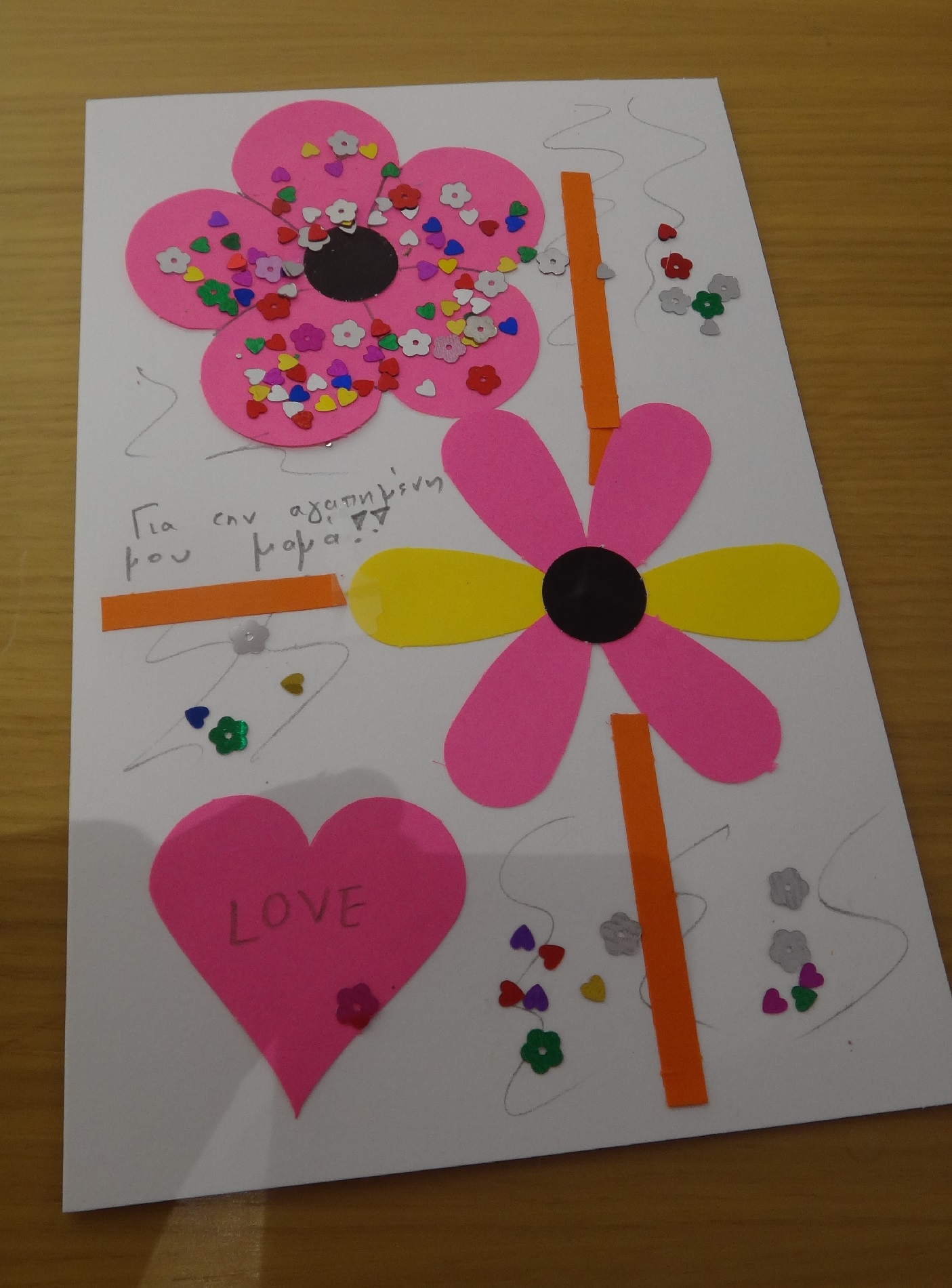 Την Παρασκευή 11 Μαΐου τα παιδιά έμαθαν την ιστορία της Γιορτής της Μητέρας και έφτιαξαν κάρτες με χαρτόνια.