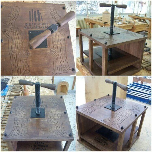 Ευχαριστούμε θερμά τον κ. Φώτη Αγγέλη, σπουδαστή της Ξυλογλυπτικής Σχολής Καλαμπάκας για την υπέροχη πρέσα βιβλιοδεσίας που έφτιαξε και δώρισε στη Βιβλιοθήκη.