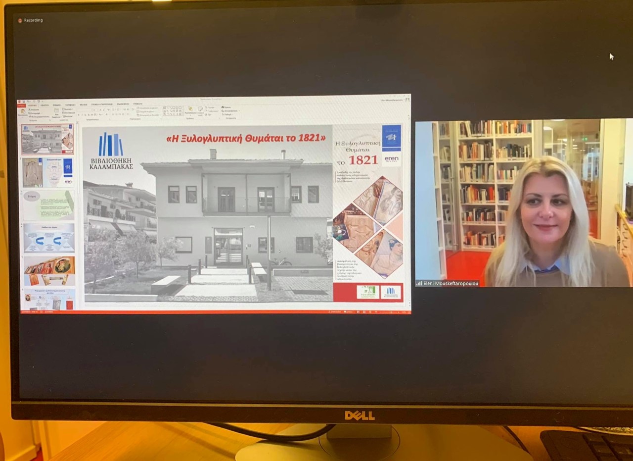 Στην εισήγηση παρουσιάστηκε το συνεργατικό έργο με την Επαγγελματική Σχολή Ξυλογλυπτικής & Διακοσμητικής Επίπλου Καλαμπάκας του ΕΛΓΟ ΔΗΜΗΤΡΑ, “Η Ξυλογλυπτική Θυμάται το 1821”, το οποίο υλοποιείται στο πλαίσιο του εορτασμού των 200 χρόνων από την Ελληνική Επανάσταση και τελεί υπό την αιγίδα της Επιτροπής «Ελλάδα 2021» και Χορηγό Δράσης την εταιρία Eren Hellas.