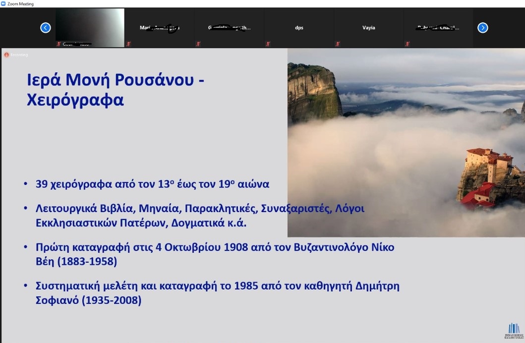 Το έργο ψηφιοποίησης της συλλογής των χειρόγραφων κωδίκων της Ιεράς Μονής Ρουσάνου, που υλοποιήθηκε σε συνεργασία με το ΜΙΕΤ, παρουσιάστηκε την Παρασκευή 1 Οκτωβρίου στο 4ο Πανελλήνιο Συνέδριο Ψηφιοποίησης Πολιτιστικής Κληρονομιάς, Euromed 2021, το οποίο, λόγω των επιδημιολογικών δεδομένων, διεξήχθη διαδικτυακά. Διοργανωτές φορείς του συνεδρίου ήταν το Πανεπιστήμιο Δυτικής Αττικής, το Τεχνολογικό Πανεπιστήμιο Κύπρου και ο Πολιτιστικός οργανισμός “Δίκτυο Περραιβία”, υπό την αιγίδα της Α.Ε. της Προέδρου της Ελληνικής Δημοκρατίας κυρίας Κατερίνας Σακελλαροπούλου και της Α.Θ. Παναγιότητος του Οικουμενικού Πατριάρχου Κωνσταντινουπόλεως κυρίου κυρίου Βαρθολομαίου.