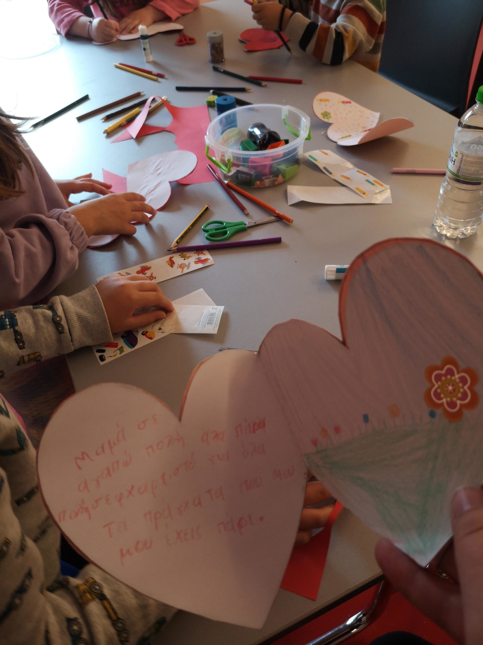 Αφιερωμένο σε όλες τις μανούλες ήταν το εργαστήριο ζωγραφικής την Παρασκευή 12 Μαΐου στη Βιβλιοθήκη. Με αφορμή τη γιορτή της μητέρας, που στην Ελλάδα και στις περισσότερες χώρες, γιορτάζεται πάντα την δεύτερη Κυριακή του Μαΐου, τα παιδιά έφτιαξαν μια κατασκευή για να τη προσφέρουν στις μητέρες τους. Με αστείρευτη φαντασία, πολύ χρώμα και πολλή αγάπη φιλοτέχνησαν ευχετήριες κάρτες, εκφράζοντας τα συναισθήματά τους και την εκτίμησή τους για το πιο σημαντικό πρόσωπο στη ζωή τους!