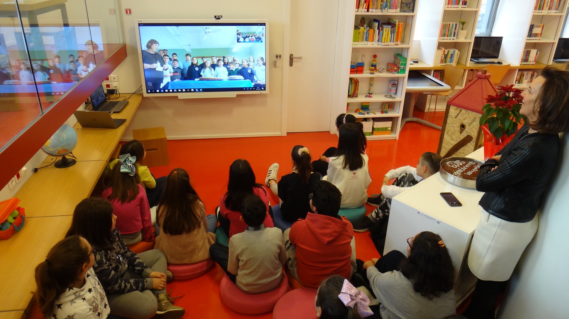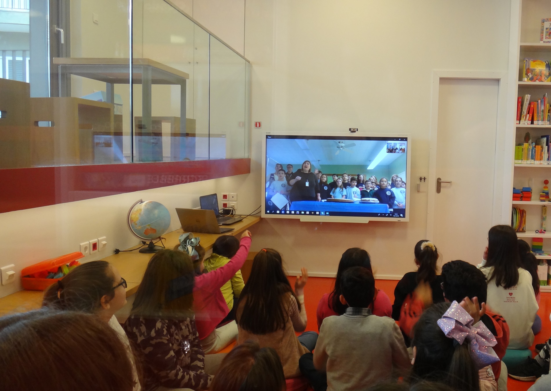 Ο Διευθυντής του 4ου Δημοτικού Σχολείου Καλαμπάκας και οι δάσκαλοι της Ε’ και ΣΤ’ Τάξης ήρθαν στη Βιβλιοθήκη μαζί με τους μαθητές τους όπου συνδεθήκαμε μέσω τηλεδιάσκεψης με τους μαθητές της Ελληνοαμερικανικής Ακαδημίας του Λόουελ των ΗΠΑ.