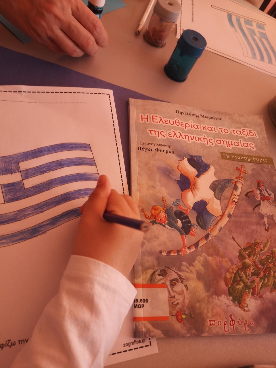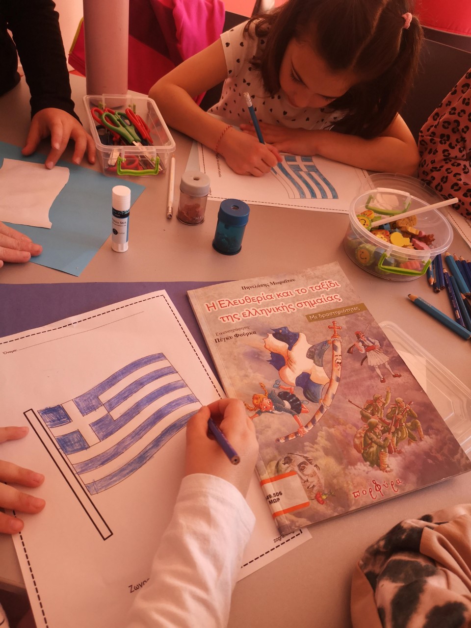 Τη Παρασκευή 24 Μαρτίου οι μικροί μας καλλιτέχνες, εμπνευσμένοι από την εορτή της 25ης Μαρτίου, ζωγράφισαν την ελληνική σημαία και τους ήρωες της Ελληνικής Επανάστασης. Με αφορμή το βιβλίο «Η Ελευθερία και το ταξίδι της ελληνικής σημαίας», τα παιδιά έμαθαν την ιστορία, τη προτίμηση των χρωμάτων, του είδους και του σχήματος της σημαίας, καθώς και τον συμβολισμό της.
