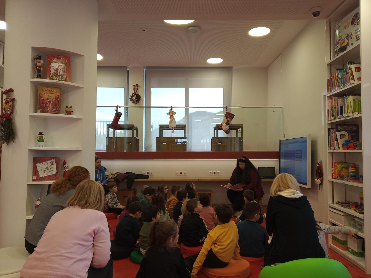 Χαριτωμένα και σκανταλιάρικα προσωπάκια από το 1ο Νηπιαγωγείο γέμισαν χαμόγελα τη Βιβλιοθήκη την Τρίτη 13 Δεκεμβρίου. Τα παιδιά ξεναγήθηκαν στο παιδικό τμήμα, εξοικειώθηκαν με το χώρο και γνώρισαν τη παιδική συλλογή βιβλίων και παιχνιδιών.