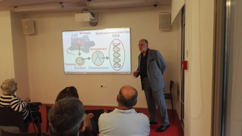 Την Τετάρτη 7 Σεπτεμβρίου, ο κ. Ηλιόπουλος πραγματοποίησε ομιλία με θέμα «Η Ανθρώπινη Διασπορά, μια σύντομη ιστορία 150 χιλιάδων ετών». Κατά την ομιλία του παρουσίασε τις εξελίξεις σχετικά με τη γενετική μας καταγωγή, μίλησε για “χαμένους συγγενείς” σε απίθανα μέρη που δεν περιμέναμε, αλλά και για τις ανακαλύψεις των ανθρωπολόγων, που μας διαφώτισαν ακόμα περισσότερο, εκεί που υποθέταμε ότι τα γνωρίζαμε όλα.