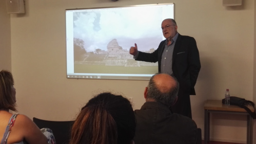 Την Πέμπτη 8 Σεπτεμβρίου, στις 12:00 μ.μ., πραγματοποιήθηκε ομιλία με θέμα «Ανάμεσα στο βασίλειο του φόβου και τον ομιχλώδη ουρανό: Ένα οδοιπορικό στη χερσόνησο του Γιουκατάν, αναζητώντας τους Μάγιας στην ζούγκλα και σε υπόγειους ποταμούς», σε μαθητές δημοτικού και γυμνασίου. Κατά την ομιλία παρουσιάστηκαν φωτογραφίες από τα ταξίδια του ομιλητή στο Μεξικό και αναλύθηκε η ζωή και ο πολιτισμός των Μάγια, με τρόπο ευχάριστο και κατανοητό από τις μικρότερες ηλικίες.