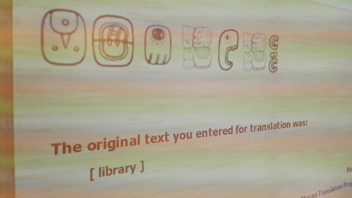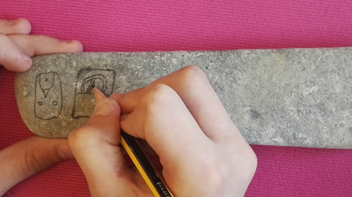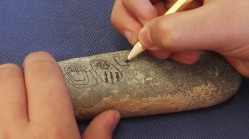Η εκδήλωση ολοκληρώθηκε με τον σχεδιασμό ιδεογραμμάτων των Μάγια, πάνω σε βότσαλα, από τα ίδια τα παιδιά.