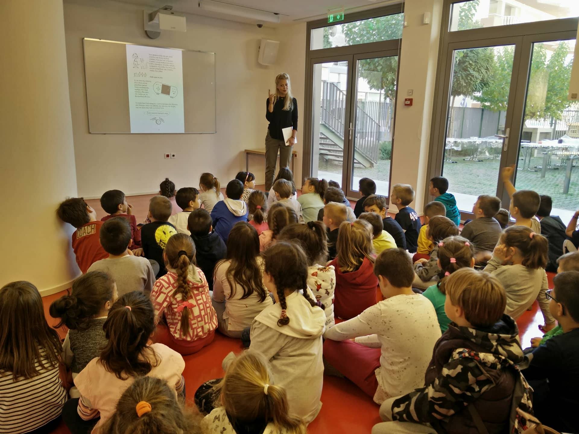 Η συγγραφέας του βιβλίου Ο Τυροκοφτερός, παρευρέθηκε στη Βιβλιοθήκη για να μιλήσει στις πρώτες τάξης του 3ου και 5ου Δημοτικού σχετικά με την υγιεινή διατροφή καθώς και τον κεντρικό χαρακτήρα του βιβλίου της. Έπειτα, τα παιδιά βγήκαν στην αυλή όπου ζωγράφισαν και σχεδίασαν το δικό τους βαλιτσάκι φαγητού.Τέλος τραγούδησαν το τραγούδι του Τυροκοφτερού.