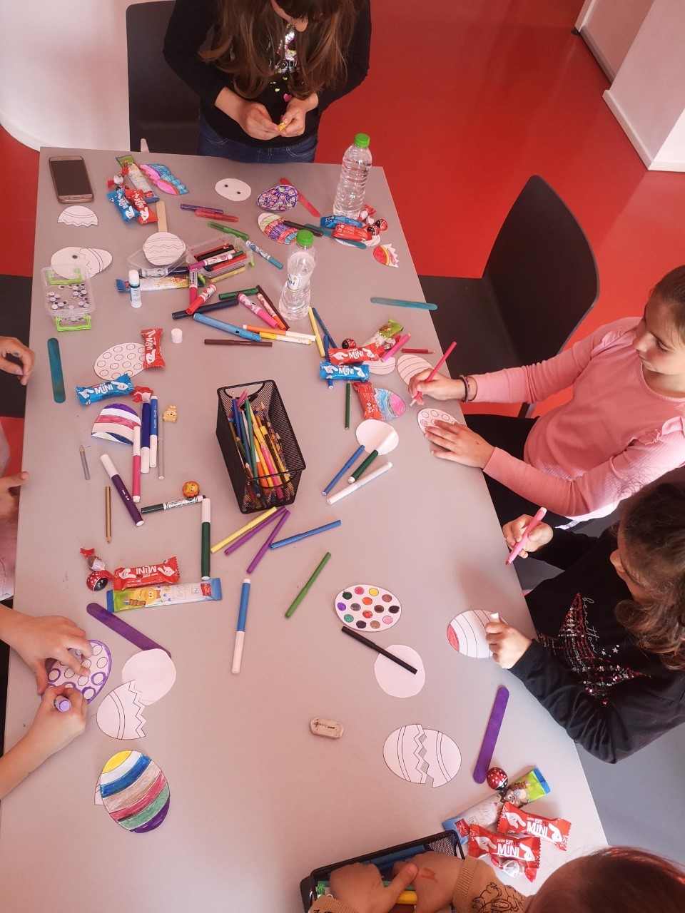 Στο εργαστήρι ζωγραφικής που πραγματοποιήθηκε την Παρασκευή 7 Α-πριλίου οι μικροί μας φίλοι χρησιμοποίησαν τη φαντασία και τη δημιουργικότητά τους και έφτιαξαν όμορφες και διασκεδαστικές Πασχαλινές κατασκευές με απλά υλικά. Αφού μιλήσαμε για Πασχαλινά έθιμα, στη συνέχεια φιλοτέχνησαν το δικό τους πασχαλινό αυγό με πολλά χρώματα και ευφάνταστα σχέδια!