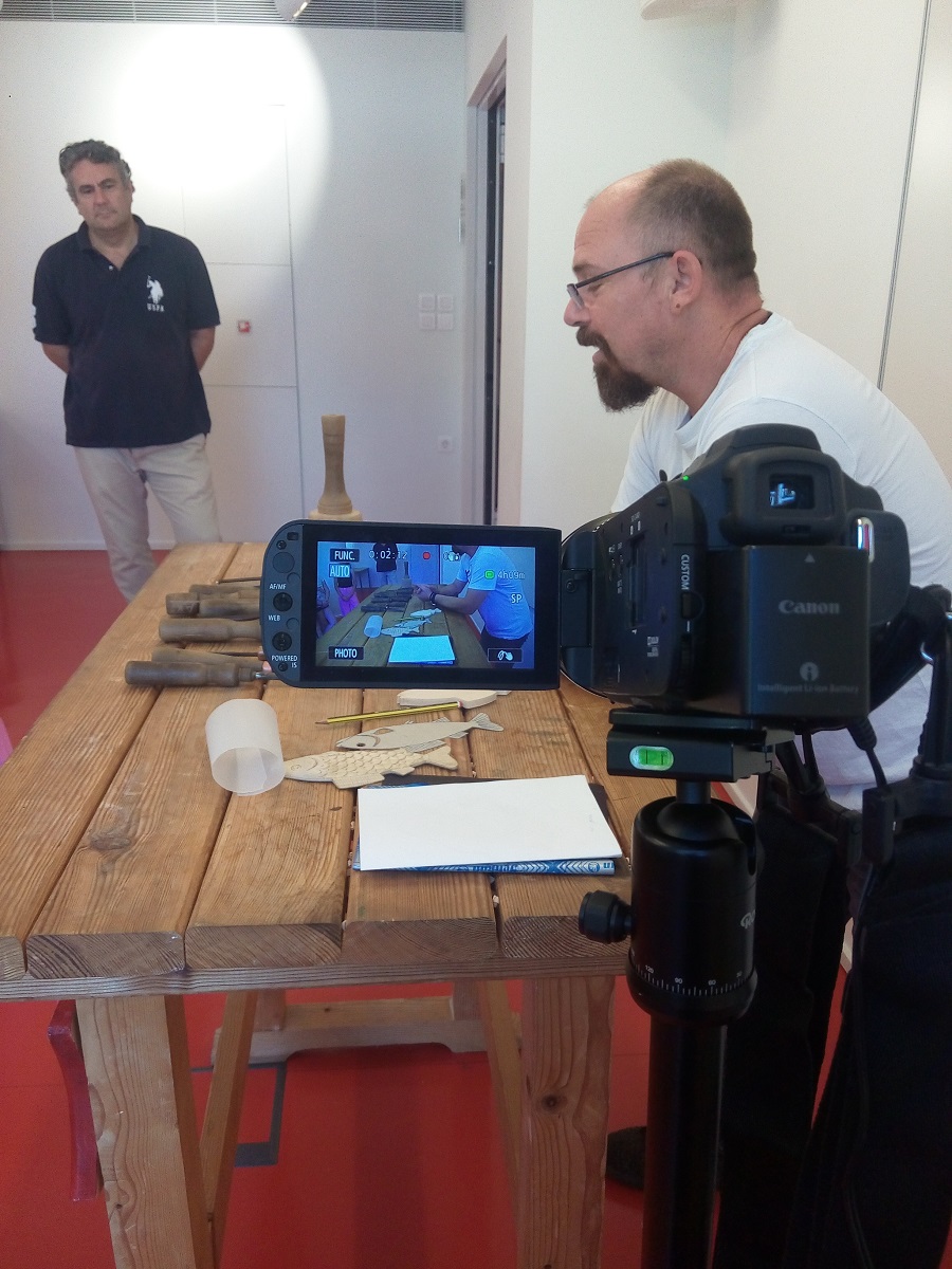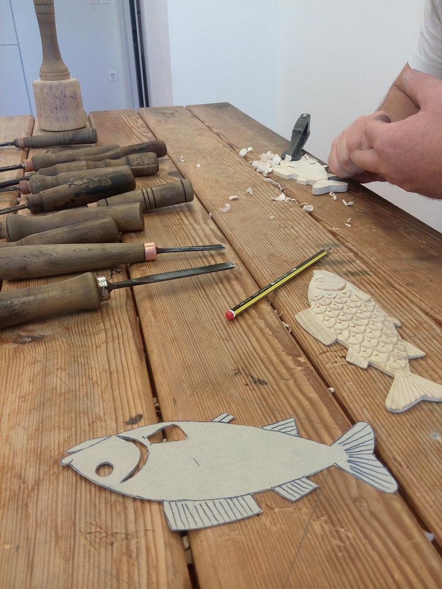 Στη πρώτη φάση τα παιδιά ασχολήθηκαν με το σχεδιασμό ενός αντικειμένου, συγκεκριμένα ενός ψαριού, με ελεύθερο χέρι. Στο δεύτερο μέρος του εργαστηρίου, οι μικροί μας φίλοι είχαν την ευκαιρία και τη χαρά να παρακολουθήσουν τη διαδικασία απεικόνισης του σχεδίου που έχουν ζωγραφίσει πάνω στο ξύλο. Τα παιδιά έμαθαν για τεχνικές διακόσμησης, αισθητικούς κανόνες, διάφορα είδη εργαλείων και για τα ποικίλα είδη ξύλου.