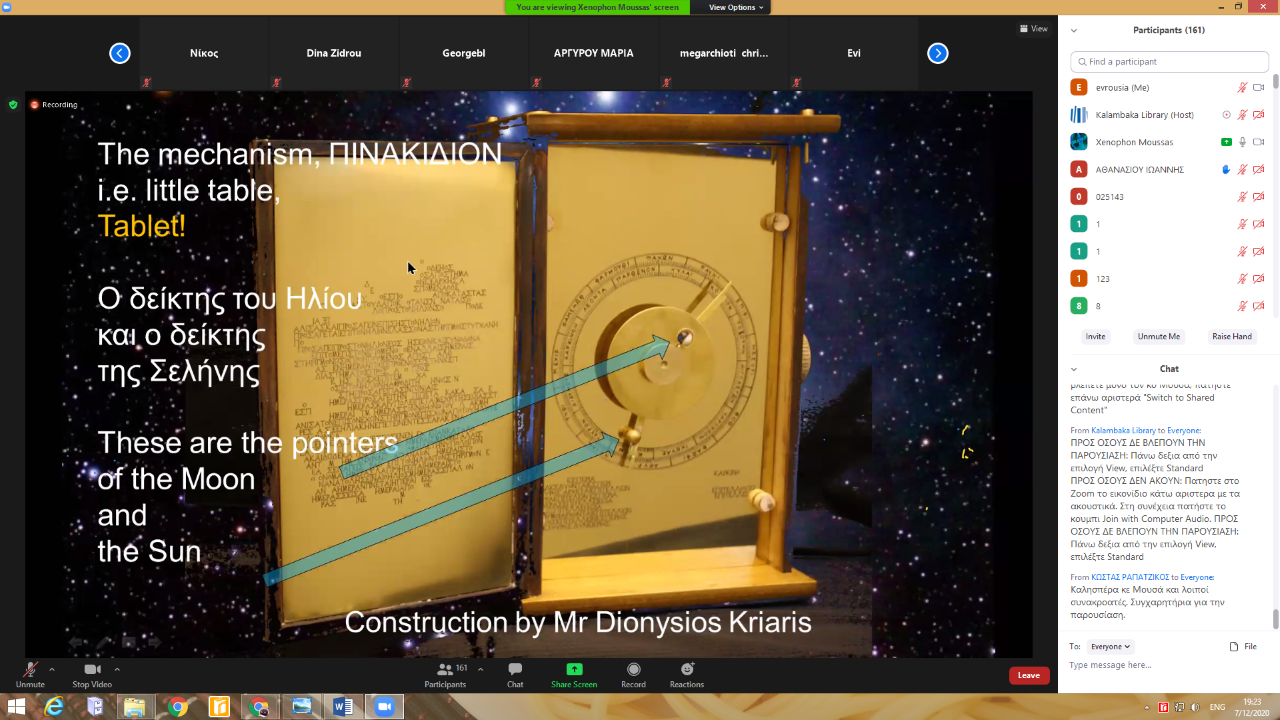 Άκρως ενδιαφέρουσα και εποικοδομητική ήταν η διαδικτυακή εκδήλωση που πραγματοποιήθηκε την Δευτέρα 7 Δεκεμβρίου με καλεσμένο τον κ. Ξενοφώντα Μουσά, καθηγητή Φυσικής Διαστήματος του ΕΚΠΑ, και θέμα τον περίφημο Μηχανισμό των Αντικυθήρων.