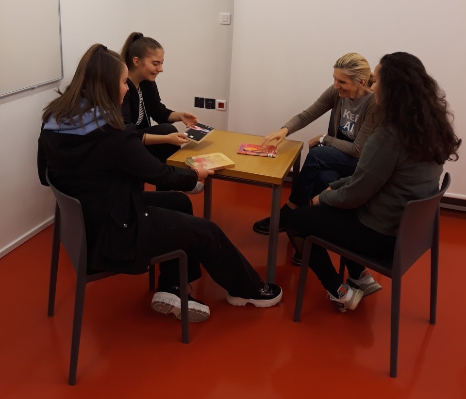 Το απόγευμα της Τρίτης 22 Οκτωβρίου πραγματοποιήθηκε η συνάντηση της λέσχης ανάγνωσης εφήβων. Η λέσχη απευθύνεται σε εφήβους 12-16 ετών και έχει στόχο την ανάπτυξη της αντιληπτικής ικανότητας και της κριτικής σκέψης. Τα παιδιά μαθαίνουν ν’ αγαπάνε το βιβλίο και ό,τι έχει σχέση με αυτό, συζητούν αναγνώσματα που έχουν επιλέξει από κοινού με τη συντονίστρια της λέσχης και εκφράζουν τα συναισθήματά τους.