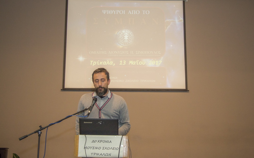 Η συγκεκριμένη εκδήλωση διοργανώθηκε από τον σύλλογο γονέων και κηδεμόνων του Μουσικού Σχολείου με ομιλητή τον Επίτιμο Διευθυντή του Ευγενίδειου Πλανηταρίου της Αθήνας, γνωστό καθηγητή αστροφυσικής κ. Διονύση Σιμόπουλο.