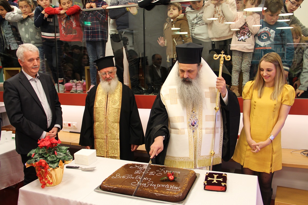 Τη βασιλόπιτα ευλόγησε ο σεβασμιότατος Μητροπολίτης Σταγών και Μετεώρων κ. Θεόκλητος, παρουσία πολλών φίλων και μελών της Βιβλιοθήκης.
