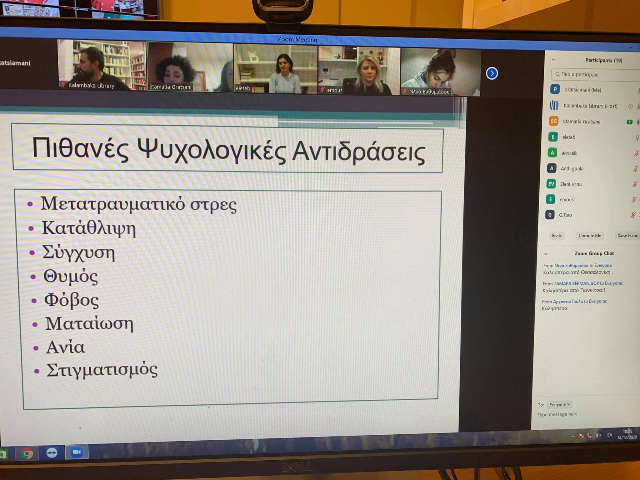 Τη Δευτέρα 14 Δεκεμβρίου πραγματοποιήθηκε η διαδικτυακή εκδήλωση σε συνεργασία με τη Κινητή Μονάδα Ψυχικής Υγείας Τρικάλων με θέμα τη σημασία της διατήρησης της ψυχικής υγείας εν μέσω πανδημίας.
