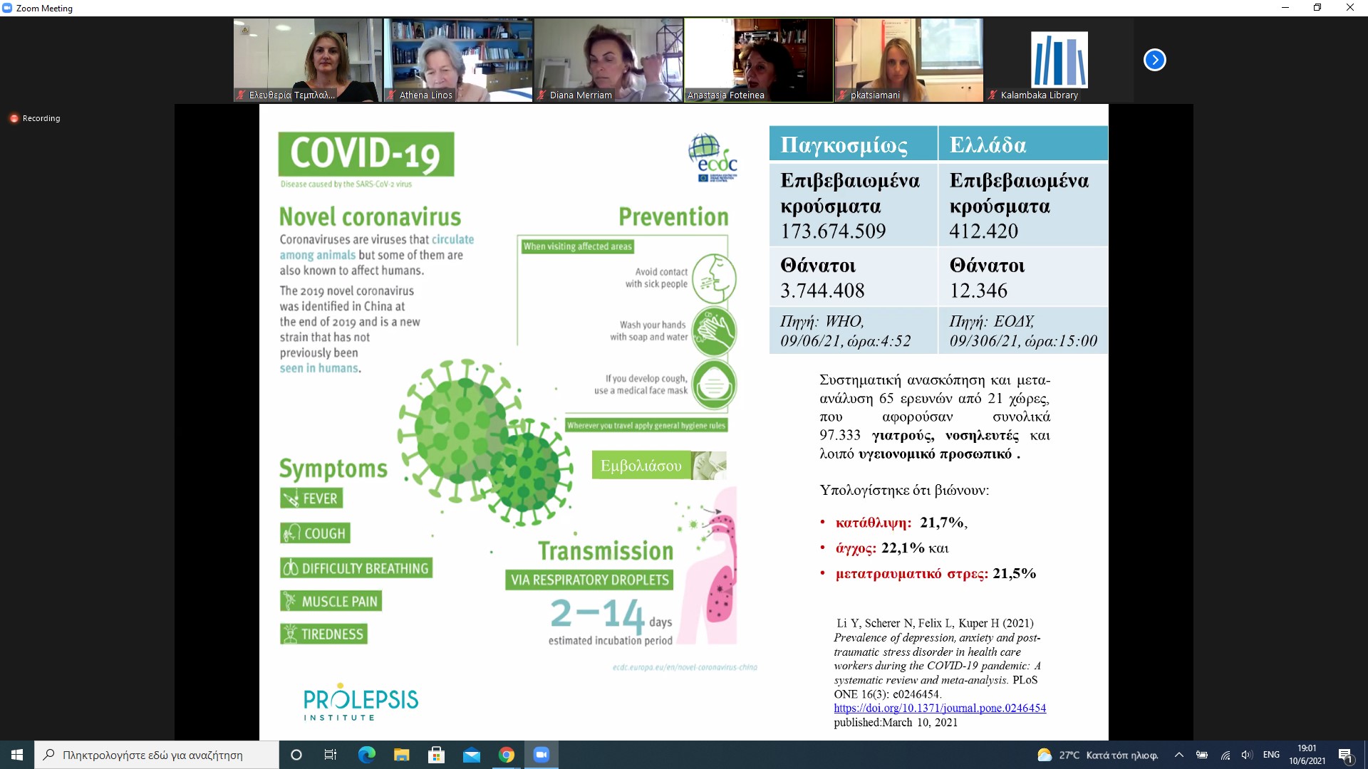 Άκρως ενδιαφέρουσα και κατατοπιστική ήταν η χθεσινή τηλεδιάσκεψη με την κα Αθηνά Λινού, Πρόεδρο του Ινστιτούτου Προληπτικής, Περιβαλλοντικής και Εργασιακής Ιατρικής Prolepsis και Καθηγήτρια του Πανεπιστημίου Αθηνών. Καλεσμένη στην εκδήλωση ήταν επίσης η κα Αναστασία Πανταζοπούλου – Φωτεινέα, Ιατρός Δημόσιας Υγείας και ειδικός Ιατρός Εργασίας, σύμβουλος του Ινστιτούτου Prolepsis. Η κα Πανταζοπούλου παρουσίασε στο κοινό δεδομένα και αποτελέσματα ερευνών όσον αφορά τις επιπτώσεις του Covid-19 στην υγεία και τη ψυχολογική κατάσταση των πολιτών, ενώ, τόσο η κα Πανταζοπούλου όσο και η κα Λινού επέμεναν περισσότερο στο θέμα του εμβολιασμού, που όπως ήταν αμανενόμενο, μονοπώλησε τη συζήτηση.