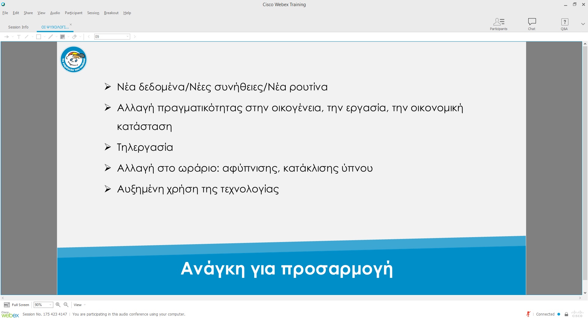 Το απόγευμα της Τρίτης 17 Νοεμβρίου πραγματοποιήθηκε τηλεδιάσκεψη σε συνεργασία με τον οργανισμό «Το Χαμόγελο του Παιδιού», σχετικά με τις δυσκολίες που αντιμετωπίζουν παιδιά και γονείς την περίοδο του υποχρεωτικού εγκλεισμού. Την εισήγηση πραγματοποίησε η κα Ελισσάβετ Γεωργίου, ψυχολόγος του οργανισμού, η οποία αναφέρθηκε στις επιπτώσεις της πανδημίας στη παιδική ευημερία και στους τρόπους με τους οποίους μπορούν να ανταποκριθούν οι γονείς στις ανάγκες των παιδιών τους.