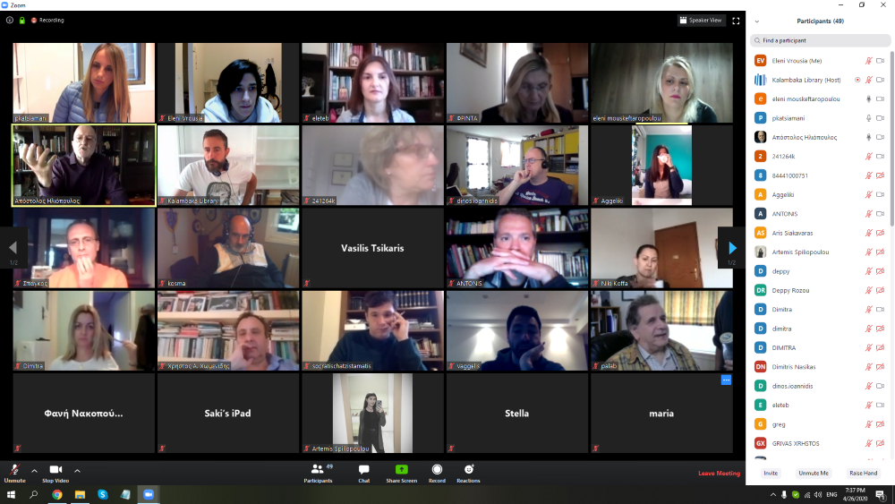Την τηλεδιάσκεψη παρακολούθησε η Πρόεδρος και οραματίστρια της Βιβλιοθήκης, κα Κατερίνα-Νταϊάνα Δημουλά-Μέρριαμ, καθώς και άτομα όχι μόνο από τη Θεσσαλία, αλλά από διάφορα μέρη της Ελλάδας.