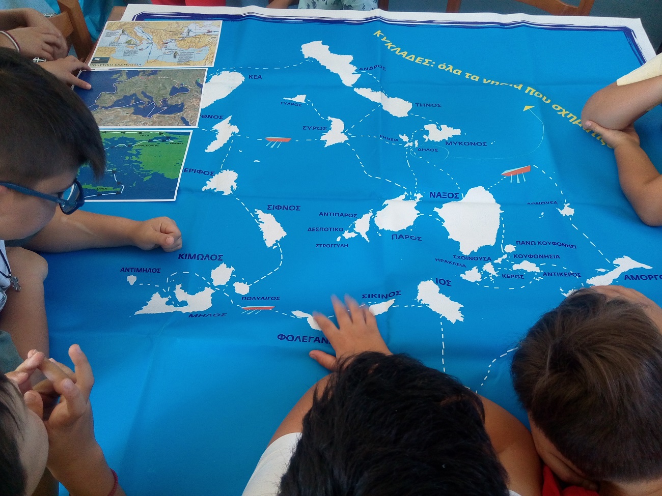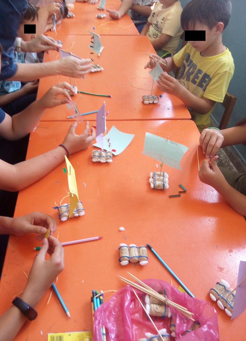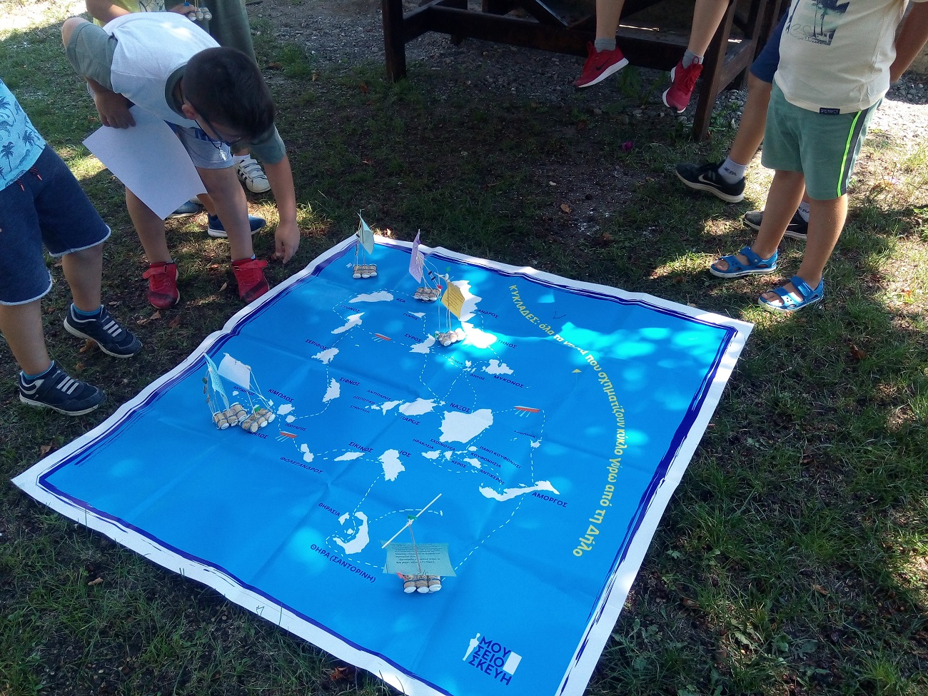 Στη συνέχεια τα παιδιά έφτιαξαν με απλά υλικά το δικό τους καραβάκι και με οδηγό τη φαντασία έγραψαν μια ιστορία με τις περιπέτειες που φαντάζονται ότι θα συναντήσει το καράβι τους στα νησιά των Κυκλάδων!