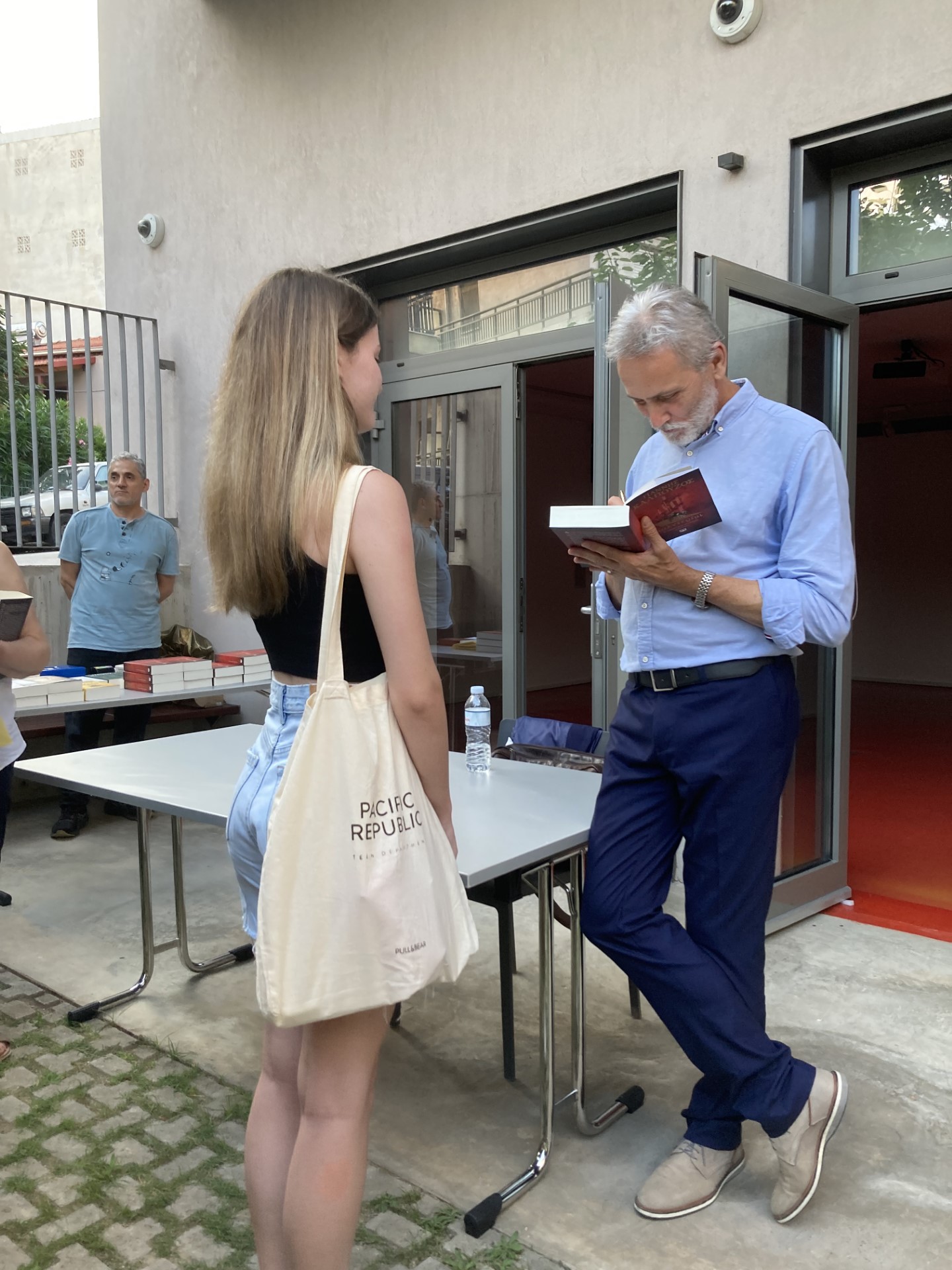 Ο συγγραφέας ανέλυσε τη ψυχοσύνθεση των ηρώων του, τα ιστορικά γεγονότα γύρω από τα οποία εκτυλίσσεται η πλοκή, μοιράστηκε σκέψεις του με το κοινό και υπέγραψε αντίτυπα του βιβλίου του.