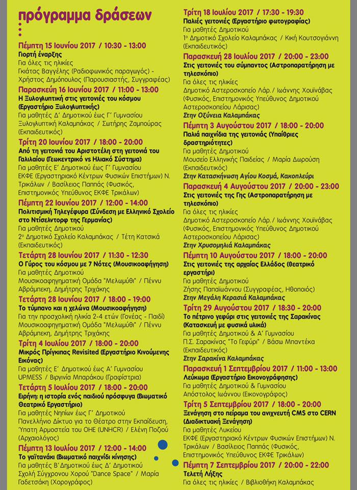 Βρείτε εδώ το πλήρες πρόγραμμα των καλοκαιρινών δράσεων της Βιβλιοθήκης Καλαμπάκας. Γραφτείτε στις δράσεις που σας ενδιαφέρουν μέσω του ημερολογίου.