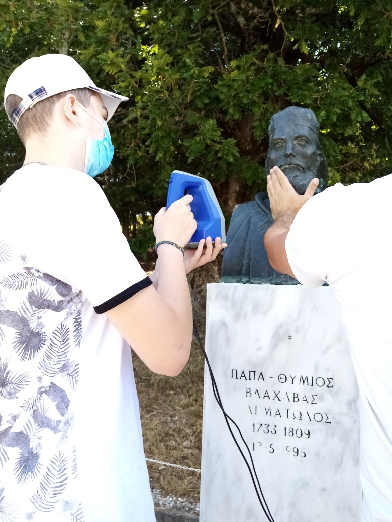 Με τη βοήθεια του προσωπικού της Βιβλιοθήκης, οι μαθητές χρησιμοποίησαν τον τρισδιάστατο σαρωτή για την ψηφιακή απεικόνιση της προτομής του Παπαθύμιου Βλαχάβα, ενώ στη συνέχεια θα συμμετέχουν στην επεξεργασία του ψηφιακού αρχείου και στην τρισδιάστατη εκτύπωσή του μέσω του 3D εκτυπωτή που διαθέτει η Βιβλιοθήκη.