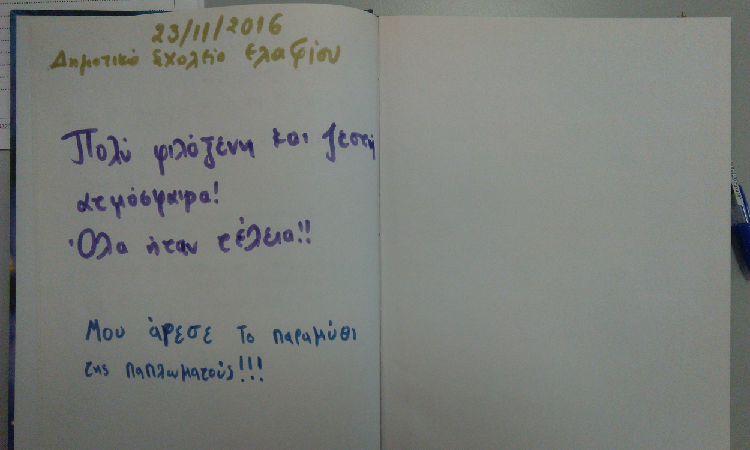 Σήμερα Τετάρτη 23/11/2016 το Δημοτικό Σχολείο Ελαφίου επισκέφθηκε τη Βιβλιοθήκη.
